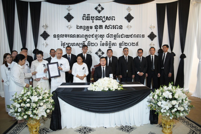 នាព្រឹកថ្ងៃទី២៣ ខែវិច្ឆិកា ឆ្នាំ២០២៥ ឯកឧត្តមរដ្ឋមន្រ្តី ឌិត ទីណា បានអញ្ជើញដឹកនាំគណៈប្រតិភូក្រសួងកសិកម្ម រុក្ខាប្រមាញ់ និងនេសាទ គោរពវិញ្ញាណក្ខន្ធសព ឯកឧត្តម នុត សាអាន ប្រធានគណៈកម្មាធិការជាតិប្រឆាំងទារុណកម្ម ដែលបានទទួលមរណៈភាពក្នុងជន្មាយុ ៨៣ឆ្នាំ ដោយរោគាពាធ៕
