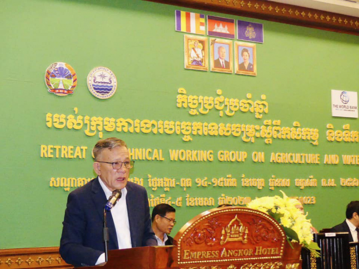 នាព្រឹកថ្ងៃទី០៤ ខែមេសា ឆ្នាំ២០២៣ នៅសណ្ឋាគារ អេមព្រីសអង្គររីសតនិងស្ប៉ា ទីរួមខេត្តសៀមរាប លេខាធិការដ្ឋានក្រុមការងារបច្ចេកទេសចម្រុះស្តីពីកសិកម្មនិងទឹក (Technical Working Group on Agriculture and Water(TWG-AW)) បានរៀបចំកិច្ចប្រជុំប្រចាំឆ្នាំ២០២២ ក្រោមអធិបតីភាពឯកឧត្ដមសហប្រធានក្រុមការងារបច្ចេកទេសចម្រុះស្ដីពីកសិកម្មនិងទឹក ០២រូប គឺឯកឧត្ដម ហ៊ាន វណ្ណហន រដ្ឋលេខាធិការក្រសួងកសិកម្ម រុក្ខាប្រមាញ់ និងនេសាទ និង ឯកឧត្តម ថោ ជេដ្ឋា រដ្ឋលេខាធិការក្រសួងធនធានទឹក និងឧតុនិយម។