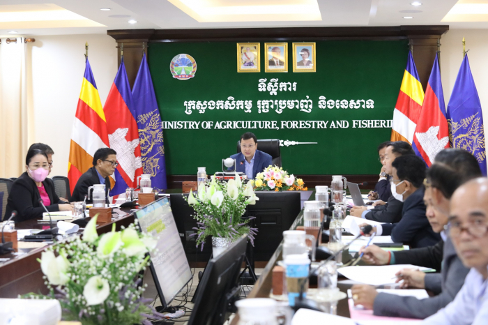 នាព្រឹកថ្ងៃទី០៩ ខែមីនា ឆ្នាំ២០២៣ ឯកឧត្តម ឌិត ទីណា រដ្ឋមន្ត្រីក្រសួងកសិកម្ម រុក្ខាប្រមាញ់ និងនេសាទ បានចូលរួមដឹកនាំប្រជុំពិនិត្យ និងពិភាក្សាលើសេចក្ដីព្រាងប្រកាសអន្តរក្រសួងស្ដីពីការរៀបចំនិងការប្រព្រឹត្តទៅរបស់ការិយាល័យ និងអង្គភាពចំណុះវិទ្យាស្ថានស្រាវជ្រាវនិងអភិវឌ្ឍន៍កសិកម្មកម្ពុជា (CARDI) និងវិទ្យាស្ថានស្រាវជ្រាវកៅស៊ូកម្ពុជា (CRRI) នៅទីស្ដីការក្រសួងកសិកម្ម រុក្ខាប្រមាញ់ និងនេសាទ។