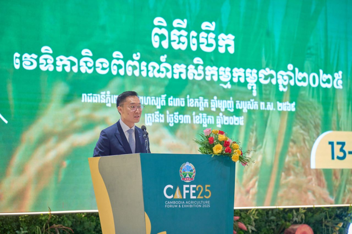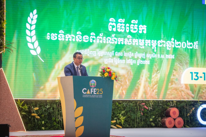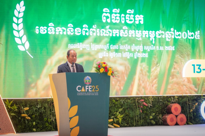 ទិដ្ឋភាពពិធីបើកវេទិកា និងពិព័រណ៍កសិកម្មកម្ពុជា (CAFE25) ក្រោមអធិបតីភាព ឯកឧត្តមបណ្ឌិតសភាចារ្យ អ៊ុក រ៉ាប៊ុន ទេសរដ្ឋមន្ត្រី ប្រធានក្រុមប្រឹក្សាស្ដារអភិវឌ្ឍន៍វិស័យកសិកម្ម និងជនបទ និងជាតំណាងដ៏ខ្ពង់ខ្ពស់សម្តេចមហាបវរធិបតី ហ៊ុន ម៉ាណែត នាយករដ្ឋមន្ត្រីនៃព្រះរាជាណាចក្រកម្ពុជា៕