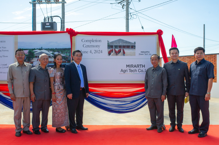 នៅព្រឹកថ្ងៃទី០៤ ខែមិថុនា ឆ្នាំ២០២៤ ឯកឧត្តម តូច ប៊ុនហួរ រដ្ឋលេខាធិការក្រសួងកសិកម្ម រុក្ខាប្រមាញ់ និងនេសាទ តំណាងដ៏ខ្ពង់ខ្ពស់ ឯកឧត្តមរដ្ឋមន្ត្រី និងឯកឧត្តម Atsushi Ueno ឯកអគ្គរដ្ឋទូតជប៉ុន ប្រចាំព្រះរាជាណាចក្រកម្ពុជា បានអញ្ជើញជាគណៈអធិបតីក្នុងពិធីសម្ពោធរោងចក្រកែច្នៃគ្រាប់ស្វាយចន្ទី និងសំបកស្វាយចន្ទីទៅជាប្រេងជីវឥន្ធនៈ របស់ក្រុមហ៊ុន MIRATH GREEN TECH នៅខេត្តកំពង់ធំ។