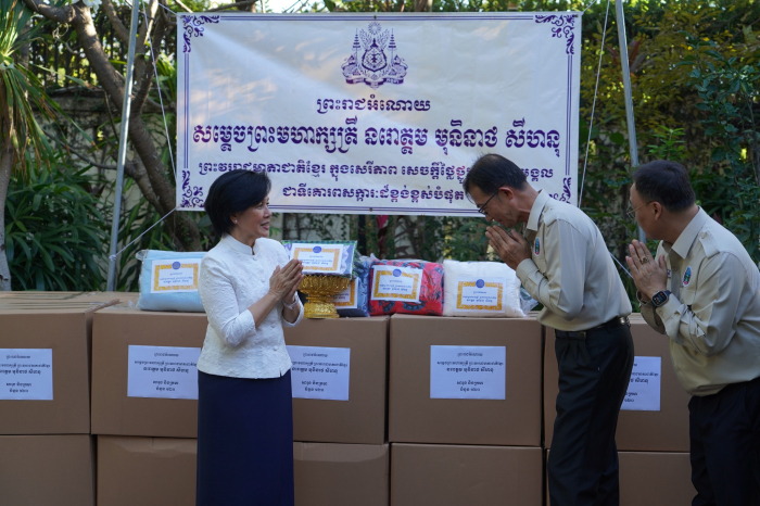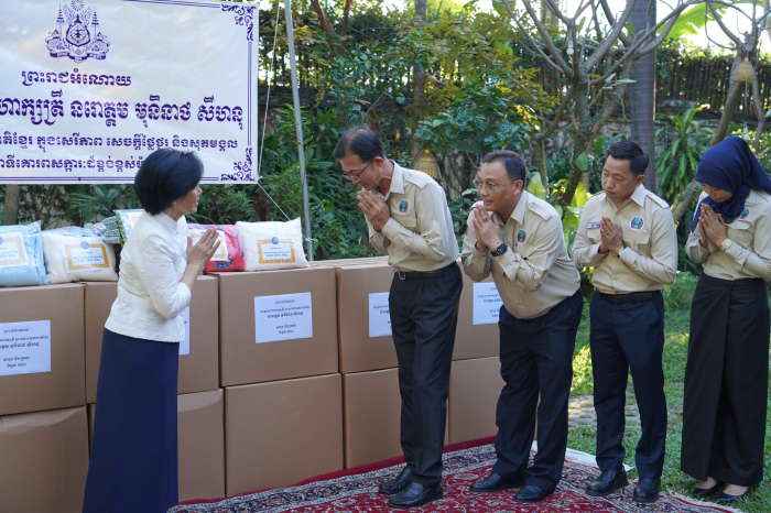 នាថ្ងៃទី១៦ ខែធ្នូ ឆ្នាំ២០២៥ សម្តេចព្រះមហាក្សត្រី នរោត្តម មុនិនាថ សីហនុ ព្រះវររាជមាតាជាតិខ្មែរ ក្នុងសេរីភាព សេចក្តីថ្លៃថ្នូរ និងសុភមង្គល ជាទីគោរពសក្ការៈដ៏ខ្ពង់ខ្ពស់បំផុត បានសព្វព្រះរាជហឬទ័យប្រោសព្រះរាជទានព្រះរាជអំណោយជាព្រះរាជទ្រព្យដ៏ឧត្តុង្គឧត្តម តាមរយៈ សម្តេចរាជបុត្រីអនុជ នរោត្តម អរុណរស្មី ជូនឯកឧត្តមរដ្ឋលេខាធិការប្រចាំការ អ៊ឹម ស៊ីថុល តំណាង ឯកឧត្តម ឌិត ទីណា រដ្ឋមន្រ្តីក្រសួងកសិកម្ម រុក្ខាប្រមាញ់ និងនេសាទ និងជាប្រធានក្រុមការងាររាជរដ្ឋាភិបាលចុះមូលដ្ឋានខេត្តបន្ទាយមានជ័យ រួមមាន៖ សារ៉ុងចំនួន ២០០០ ក្រម៉ាចំនួន ២០០០ និងសម្លៀកបំពាក់កុមារាកុមារី ជាព្រះរាជូបត្តម្ភដ៏ថ្លៃថ្លាសម្រាប់ចូលរួមជួយប្រជានុរាស្ត្រភៀសសឹក ដែលកំពុងជួបប្រទះការលំបាកខ្វះខាត ដែលកំពុងស្នាក់នៅក្នុងខេត្តបន្ទាយមានជ័យ៕