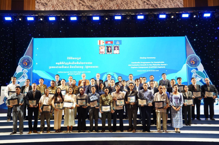 នៅព្រឹកថ្ងៃទី១៨ ខែធ្នូ ឆ្នាំ២០២៥ ឯកឧត្តម ប្រាក់ ដាវីដ  រដ្ឋលេខាធិការ ក្រសួង​កសិកម្ម រុក្ខាប្រមាញ់ និងនេសាទ អញ្ជើញជាអធិបតីភាព​ក្នុង​ពិធី «អបអរសាទរសមិទ្ធផល៦ឆ្នាំ និងការបិទបញ្ចប់កម្មវិធីជំរុញ​កំណើន វិស័យជលផលប្រកបដោយចីរភាព និងបរិយាបន្នផ្នែកនេសាទ»។ កម្មវិធីរៀបចំនៅសណ្ឋាគារសាងហ្គ្រីឡា មានការ​ចូល​រួម​ពីថ្នាក់​ដឹក​នាំ​ក្រសួងកសិកម្ម តំណាងរដ្ឋបាលជលផល សហភាព​អឺរ៉ុប អង្គការ​FAO អង្គការ UNIDO ទីភ្នាក់ងារអភិវឌ្ឍន៍បារាំង ដៃគូអភិវឌ្ឍន៍ អាជ្ញាធរ ​សាកល​​វិទ្យាល័យ និស្សិត សហគមន៍នេសាទ ​សរុបអ្នក​ចូលរួម​ប្រមាណ​៥០០នាក់។