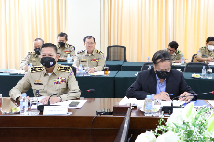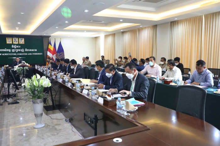 នៅទីស្តីការក្រសួងកសិកម្ម រុក្ខាប្រមាញ់ និងនេសាទ នាវេលាម៉ោង ១៤:០០ រសៀល ថ្ងៃចន្ទ ២កើត ខែពិសាខ ឆ្នាំខាល ចត្វាស័ក ព.ស. ២៥៦៥ ត្រូវនឹងថ្ងៃទី០២ ខែឧសភា ឆ្នាំ២០២២ បានរៀបចំកិច្ចប្រជុំពិភាក្សាលើការងារបង្ក្រាបបទល្មើសនៅបឹងទន្លេសាប។ កិច្ចប្រជុំដ៏មានសារ:សំខាន់នេះដឹកនាំដោយឯកឧត្តមរដ្ឋមន្រ្តី វេង សាខុន និងជាប្រធានគណៈកម្មការអន្តរក្រសួងដើម្បីទប់ស្កាត់ និងបង្ក្រាបបទល្មើសនេសាទនៅបឹងទន្លេសាប និងមានការអញ្ជើញចូលរួមពី ឯកឧត្តមនាយឧត្តមសេនីយ៍សន្តិបណ្ឌិត នេត សាវឿន អគ្គស្នងការនគរបាលជាតិ និងជាអនុប្រធាន ឯកឧត្តមនាយឧត្តមសេនីយ៍ សៅ សុខា អគ្គមេបញ្ជាការរងនៃកងយោធពលខេមរភូមិន្ទ និងជាមេបញ្ជាការកងរាជអាវុធហត្ថលើផ្ទៃប្រទេស និងជាអនុប្រធាន និងសមាជិកគណៈកម្មការអន្តរក្រសួងដើម្បីទប់ស្កាត់ និងបង្ក្រាបបទល្មើសនេសាទនៅបឹងទន្លេសាប ព្រមទាំងឯកឧត្តមអភិបាលនៃគណៈអភិបាលខេត្តទាំង៦ នៅជុំស្ថិតនៅវិញបឹងទន្លេសាប ក្រុមការងារ និងលេខាធិការដ្ឋាន ដើម្បីពិនិត្យ តាមដាន និងវាយតម្លៃលើលទ្ធផលការងារបង្ក្រាបបទល្មើសជលផលនៅបឹងទន្លេសាបក្នុងរយៈពេលមួយខែកន្លងមក និងលើកទិសដៅបន្ត។ ដើម្បីបន្តអនុវត្តបទបញ្ជាដ៏ខ្ពង់ខ្ពស់របស់ សម្តេចតេជោនាយករដ្ឋមន្រ្តី នាថ្ងៃទី២៣ ខែមីនា ឆ្នាំ២០២២ ឱ្យបានម៉ឺងម៉ាត់ មានប្រសិទ្ធភាពខ្ពស់ និងមាននិរន្តរភាព អង្គប្រជុំបានឯកភាពគ្នាដាក់ចេញនូវវិធានការចាំបាច់មួយចំនួនចំពោះមុខ និងរយៈពេលវែង ក្នុងការទប់ស្កាត់ និងបង្រ្កាបបទល្មើសជលផលខុសច្បាប់ សម្រាប់អនុវត្តន៍បន្ត ។