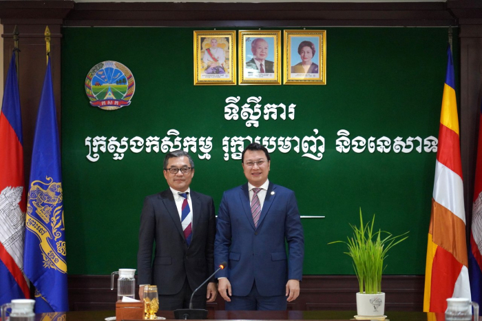 នៅព្រឹកថ្ងៃទី២៩ ខែកុម្ភៈ ឆ្នាំ២០២៤ ឯកឧត្តម ឌិត ទីណា រដ្ឋមន្ត្រីក្រសួងកសិកម្ម រុក្ខាប្រមាញ់ និងនេសាទ បានអនុញ្ញាតឲ្យក្រុមហ៊ុន មីរ៉ាត់អាហ្រ្គី ថេក ឯ.ក ជារោងចក្រកែច្នៃគ្រាប់ស្វាយចន្ទី និងសំបកស្វាយចន្ទីទៅជាប្រេងជីវឥន្ធនៈ ចូលជួបសម្តែងការគួរសម និងពិភាក្សាការងារ នៅទីស្តីការក្រសួងកសិកម្ម រុក្ខាប្រមាញ់ និងនេសាទ។