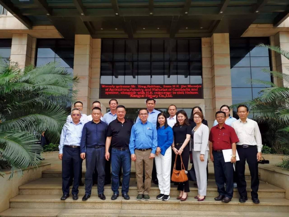 នៅព្រឹកថ្ងៃទី១៤ ខែមេសា ឆ្នាំ២០១៩ ឯកឧត្តម វេង សាខុន រដ្ឋមន្ត្រីក្រសួងកសិកម្ម រុក្ខាប្រមាញ់ និងនេសាទ និងសហការី បានចុះពិនិត្យនៅកន្លែងកែច្នៃ និងវិចខ្ចប់ កន្លែងផលិតចំណីត្រី និងមន្ទីរពិសោធន៍ របស់ក្រុមហ៊ុន Hainan XiangTai Fishery Co, Ltd.។ ឯកឧត្តមរដ្ឋមន្ត្រី ក៏បានជួបប្រជុំពិភាក្សាជាមួយលោក Liu Rong Jie ប្រធានក្រុមហ៊ុន អំពីវឌ្ឍនភាព និងគម្រោងវិនិយោគនៅក្នុងប្រទេកម្ពុជា។ លោកប្រធានក្រុមហ៊ុនបានបញ្ជាក់ថាការចិញ្ចឹមត្រីក្នុងបែរក្នុងសមុទ្រនេះមានផលចំណេញច្រើន ជាពិសេសបង្កើនប្រាក់ចំណូលដល់ប្រជាកសិកប្រមាណ១២០០០ ដុល្លា ក្នុង១ឆ្នាំ និងបង្កើតការងារប្រមាណ ៤០០០០ នាក់ ដោយរួមទាំងកម្មករកែច្នៃ ចញ្ចឹម និងមន្ទីរពិសោធន៍។ លោកប្រធានក្រុមហ៊ុនបញ្ជាក់ថា នៅកម្ពុជាមានកំរិតសីតុណ្ហភាពសមស្របអាចចិញ្ចឹមត្រីបែបនេះបានយ៉ាងល្អ ហើយក្រុមហ៊ុនកំពុងរងចាំនៅការអនុញ្ញាតពី CDC ដើម្បីដាក់ទុនវិនិយោគ និងធ្វើអោយកាន់តែប្រសើរជាងនេះទៅទៀតដោយប្រើប្រាស់បច្ចេកវិទ្យាថ្មី AI (Automated Intelligence) ដែលមានប្រសិទ្ធភាពសេដ្ឋកិច្ចខ្ពស់។ ឯកឧត្តមរដ្ឋមន្ត្រី បានស្វាគមន៍នូវការវិនិយោគបែបនេះនៅកម្ពុជា និងជំរុញអោយក្រុមហ៊ុនសហការអោយកាន់តែជិតស្និតជាមួយរដ្ឋបាលជលផល និងស្ថាប័នពាក់ពន្ធ័ដើម្បីពន្លឿននូវដំណើរការអោយបានឆាប់ ដើម្បីឆ្លើយតបនឹងតម្រូវការត្រីក្នុងស្រុកកាន់តែកើនឡើង និងនាំចេញទៅទីផ្សារអន្តរជាតិផងដែរ។