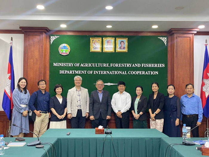 នៅថ្ងៃទី១៧ ខែកក្កដា ឆ្នាំ២០២៤ ឯកឧត្តម ហ៊ាន វណ្ណហន រដ្ឋលេខាធិការក្រសួងកសិកម្ម តំណាងដ៏ខ្ពង់ខ្ពស់ពីឯកឧត្តមរដ្ឋមន្ត្រី និងអមដោយឯកឧត្តមសាកលវិទ្យាធិការ RUA តំណាងអង្គភាព GDA, GDAHP ទីប្រឹក្សាក្រសួង បានជួបពិភាក្សានៅទីស្តីការក្រសួងកសិកម្ម ជាមួយគណប្រតិភូកូរ៉េ ដែលដឹកនាំដោយលោកបណ្ឌិត Lee Woosung ជានាយកប្រតិបត្ដិនៃវិទ្យាស្ថាន RISTI លោកស្រីបណ្ឌិត OH Jung-Eun និងលោកសាស្ត្រាចារ្យ Park Yang-Hee ប្រចាំវិទ្យាស្ថានជាតិពហុបច្ចេកទេសកម្ពុជា។