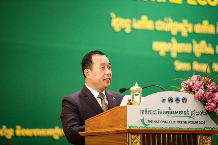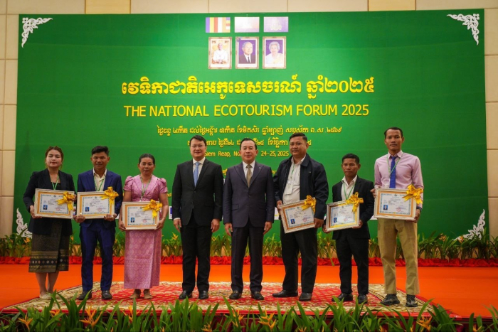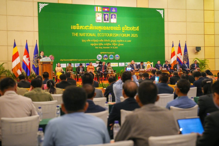 នាព្រឹកថ្ងៃទី២៤ ខែវិច្ឆិកា ឆ្នាំ២០២៥ ឯកឧត្តម ហួត ហាក់ រដ្ឋមន្រ្តីក្រសួងទេសចរណ៍ និងជាប្រធានក្រុមការងារអន្តរក្រសួងគ្រប់គ្រង និងអភិវឌ្ឍសហគមន៍ទេសចរណ៍ និងអេកូទេសចរណ៍ និង​ឯកឧត្តម ឌិត ទីណា រដ្ឋមន្រ្តីក្រសួងកសិកម្ម រុក្ខាប្រមាញ់ និងនេសាទ​ និងជាអនុប្រធាននៃ​ ក.គ.អ.អ បានអញ្ជើញជាគណៈអធិបតីក្នុងពិធីបើកវេទិកាជាតិអេកូទេសចរណ៍លើកទី៤ នៅខេត្តសៀមរាប។