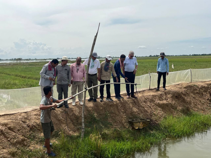 នៅថ្ងៃទី១៥ ខែសីហា ឆ្នាំ២០២៥ ឯកឧត្តម ហាស់ សារ៉េត រដ្ឋលេខាធិការក្រសួងកសិកម្ម រុក្ឋាប្រមាញ់ និងនេសាទ ដោយមានការចូលរូមពី ឯកឧត្តមអនុរដ្ឋលេខាធិការ ទឹម បូរក្ស និងក្រុមការងារ លោក ថាយ សុមុនី ប្រធាននាយកដ្ឋានអភិវឌ្ឍន៍វារីវប្បកម្ម នៃរដ្ឋបាលជលផល ជំនាញការបរទេសក្រុមហ៊ុនNIRAS (IT2) នៃកម្មវិធី CaPFish Aquaculture/IT2 លោក ញ៉ិប ស្រ៊ន ប្រធានកសិកម្មខេត្តតាកែវ លោក អ៊ុក ហាក់  នាយរងខណ្ឌរដ្ឋបាលជលផលតាកែវ  ដើម្បីចុះពិនិត្យកសិដ្ឋានបំប៉ននិងចិញ្ចឹម បង្កង និងត្រីប្រា ក្នុង ខេត្តតាកែវ។