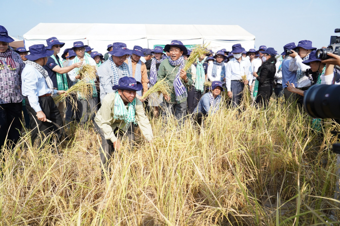 ឯកឧត្តមរដ្ឋមន្ត្រី ឌិត ទីណា ចូលរួមកម្មវិធីទិវាស្រែបង្ហាញ ដើម្បីផ្សព្វផ្សាយពូជស្រូវចំបុីស៧០
