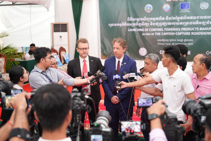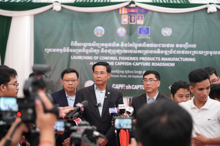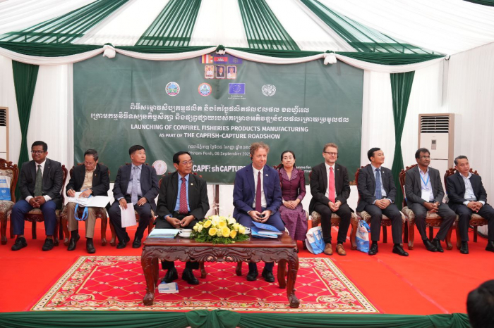នៅថ្ងៃទី៨ ខែកញ្ញា ឆ្នាំ២០២៥នេះ ឯកឧត្តម ហាស់ សារ៉េត រដ្ឋលេខាធិការក្រសួងកសិកម្ម រុក្ខាប្រមាញ់ និងនេសាទ  និងជាតំណាងដ៏ខ្ពង់ខ្ពស់របស់ឯកឧត្តមរដ្ឋមន្ត្រី ឌិត ទីណា នៃក្រសួងកសិកម្ម រុក្ខាប្រមាញ់ និងនេសាទបានអញ្ជើញចូលរួមជាអធិបតីក្នុងឱកាសនៃពិធីបើកយុទ្ធនាការផ្សព្វផ្សាយលើកទី៣ (Roadshow) ស្តីពីផល ផលិតផលជលផល ដែលសហការរៀបចំដោយក្រសួងកសិកម្ម រុក្ខាប្រមាញ់ និងនេសាទ គណៈប្រតិភូសហភាពអឺរ៉ុប និងអង្គការ UNIDO តាមរយៈគម្រោងអភិវឌ្ឍន៍ជលផលក្រោយប្រមូលផល (CAPFISH-Capture) និងពិធីសម្ពោធបើកឱ្យដំណើរការសិប្បកម្មផលិតនិងកែច្នៃប្រហុកម្សៅរបស់ក្រុមហ៊ុន CONFIREL នៅរាជធានីភ្នំពេញ។