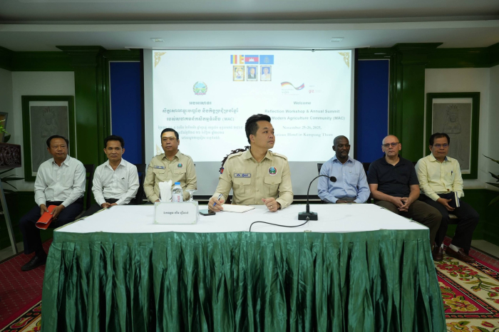 នាព្រឹកថ្ងៃទី២៥ ខែវិច្ឆិកា ឆ្នាំ២០២៥ ឯកឧត្តម ឃឹម ហ្វីណង់ អនុរដ្ឋលេខាធិការទទួលបន្ទុកការងារអភិវឌ្ឍន៍សហគមន៍កសិកម្ម និងជាអ្ន្នកនាំពាក្យក្រសួងកសិកម្ម រុក្ខាប្រមាញ់ និងនេសាទ បានអញ្ជើញដឹកនាំកិច្ចប្រជុំប្រចាំឆ្នាំរបស់សហគមន៍កសិកម្មទំនើបនិងសិក្ខាសាលាឆ្លុះបញ្ចាំង នៅខេត្តកំពង់ធំ។