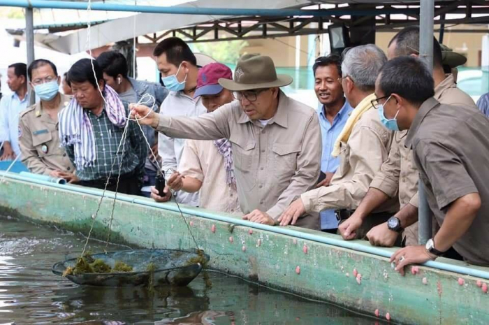 បន្ទាប់ពីបានចុះពិនិត្យមជ្ឈមណ្ឌលរួច ឯកឧត្តមរដ្ឋមន្រ្តីបានកោតសរសើរ និងវាយតម្លៃខ្ពស់ចំពោះថ្នាក់ដឹកនាំ និងមន្រ្តីដែលបានខិតខំប្រឹងប្រែង តស៊ូក្នុងស្មារតីទទួលខុសត្រូវ យកចិត្តទុកដាក់សិក្សាស្រាវជ្រាវ និងអភិវឌ្ឍន៍មជ្ឈមណ្ឌលឲ្យមានការរីកចម្រើនស្របតាមការអភិវឌ្ឍវារីវប្បកម្មនាពេលបច្ចុប្បន្ន។ មានប្រសាសន៍ណែនាំដល់ថ្នាក់ដឹកនាំ និងមន្រ្តី លោកសុំឲ្យមជ្ឈមណ្ឌលគិតគូពីការធ្វើពាណិជ្ជកម្ម គឺមានន័យថាបង្កាត់ពូជ ចិញ្ចឹម និងធ្វើអាជីវកម្មដើម្បីបង្កើតប្រភពចំណូលយកមកបំពេញ បន្ថែមនូវតម្រូវការរបស់មជ្ឈមណ្ឌលទាំងបញ្ហាជីវភាព និងកិច្ចការស្រាវជ្រាវ ធ្វើយ៉ាងណាឲ្យមជ្ឈមណ្ឌលមានការវិវឌ្ឍន៍ដោយចិរភាព និងនិរន្តរភាព ជាពិសេសលើកកម្ពស់កំរិតជីវភាពរបស់មន្រ្តីឲ្យបានល្អប្រសើរ និងធ្វើនវានុវត្តន៍ឲ្យបានសមស្របតាមកំណើនសេដ្ឋកិច្ច និងតម្រូវការស្បៀងក្នុងកាល:ទេស:ដែលប្រទេសជាតិស្ថិតក្នុងវិបត្តិកូវីដ-១៩។ គួរស្វែងរកដៃគូជាមួយក្រុម ហ៊ុនឯកជន ឬកសិដ្ឋានចិញ្ចឹមត្រីដើម្បីសហការធ្វើជាអ្នកផ្គត់ផ្គង់កូនត្រី។ ត្រូវលើកកម្ពស់សមត្ថភាពមន្ទីរពិសោធន៍ និងបង្កើនការងារស្រាវជ្រាវ និងអភិរក្សបន្ថែមទៀត ជាពិសេសប្រភេទត្រីដែលជិតផុតពូជ និងរួមគ្នាថែរក្សាមជ្ឈមណ្ឌលទាំងមូលឲ្យបានគង់វង្ស ទុកជាប្រយោជន៍សម្រាប់បម្រើការងារស្រាវជ្រាវវិស័យវារីវប្បកម្មទាំងពេលបច្ចុប្បន្ន និងអនាគត។ ខិតខំស្វែងរកដៃគូមកជួយទាំងថវិកា និងការងារបច្ចេកទេសចិញ្ចឹម និងបង្កាត់ពូជ ដើម្បីបង្កើនកម្រិតបច្ចេកទេសស្រាវជ្រាវឲ្យបានសមស្របតាមស្តង់ដារក្នុងតំបន់ ក៏ដូចជាក្នុងពិភពលោកឈាន ទៅធ្វើការចិញ្ចឹម ការកែច្នៃ និងនាំចេញផលិត ផលត្រីកម្ពុជាទៅកាន់ទីផ្សារអន្តរជាតិនាពេលអនាគត។ នាឱកាសនេះ លោកប្រធានមន្ទីរកសិកម្ម រុក្ខាប្រមាញ់ និងនេសាទ បានជម្រាបជូនឯកឧត្តមរដ្ឋមន្រ្តីថា នៅទូទាំងខេត្តព្រៃវែងមានប្រជាពលរដ្ឋធ្វើវារីវប្បកម្ម ១២០០គ្រួសារ ហើយអាចចិញ្ចឹមត្រីបានពី១២-១៤ពាន់តោនក្នុង១ឆ្នាំ។ បរិមាណនេះអាចផ្គត់ផ្គង់ឱ្យទីផ្សារក្នុងខេត្តបាន និងនាំចេញមកកាន់រាជធានីភ្នំពេញ និងខេត្តជាប់ព្រំប្រទល់។