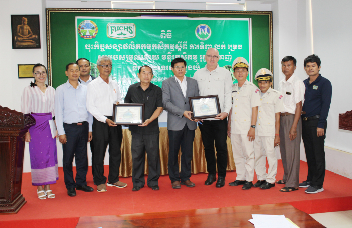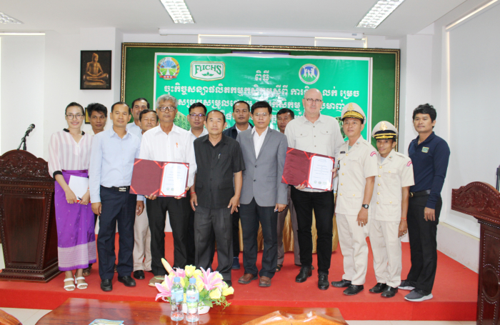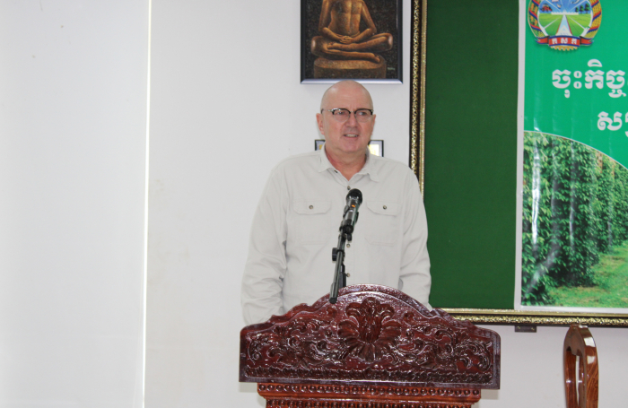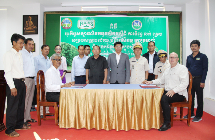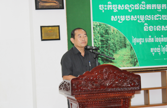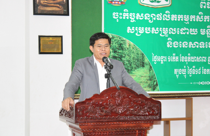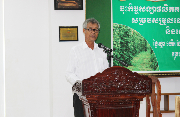 ខេត្តត្បូងឃ្មុំ៖ នាព្រឹកថ្ងៃអង្គារ ១កើត ខែទុតិយាសាឍ ឆ្នាំថោះ បញ្ចស័ក ព.ស. ២៥៦៧ ត្រូវនឹងថ្ងៃទី១៨ ខែកក្កដា ឆ្នាំ២០២៣ លោកបណ្ឌិត ចាយ ជីម ប្រធាននាយកដ្ឋានកសិ-ឧស្សាហកម្ម នៃក្រសួងកសិកម្ម រុក្ខាប្រមាញ់ និងនេសាទ និងលោក ហេង ពិសិដ្ឋ ប្រធានមន្ទីរកសិកម្ម រុក្ខាប្រមាញ់ និងនេសាទខេត្តត្បូងឃ្មុំ បានចូលរួមជាគណអធិតីក្នុងពិធីចុះកិច្ចសន្យាផលិតកម្មកសិកម្មស្តីពី ការទិញ-លក់ម្រេចខ្មៅ រវាងសហភាពសហគមន៍កសិកម្មគ្រឿងទេសកម្ពុជា និងក្រុមហ៊ុន ហ្វុកស៍(ខេមបូឌា) ឯ.ក ដោយមានការអញ្ជើញចូលរួមពីនាយកដ្ឋានកសិ-ឧស្សាហកម្ម មន្ទីរកសិកម្ម រុក្ខាប្រមាញ់ និងនេសាទខេត្តត្បូងឃ្មុំ តំណាងក្រុមហ៊ុនហ្វុកស៍(ខេមបូឌា) ឯ.ក និងតំណាងសហភាពសហគមន៍កសិកម្មគ្រឿងទេសកម្ពុជា សរុបប្រមាណ ២០រូប។ សូមបញ្ជាក់ផងដែរថាការចុះកិច្ចសន្យាផលិតកម្មកសិកម្មទិញ-លក់ម្រេចខ្មៅសុវត្ថិភាពនេះ ក្នុងបរិមាណចំនួន ២០០តោន ដែលមានការចូលរួមពីកសិករដែលជាសមាជិកសហភាពសហគមន៍កសិកម្មគ្រឿងទេសកម្ពុជាចំនួន ៣៦នាក់ ស្ថិតនៅក្នុងភូមិចំការគរ ឃុំដារ ស្រុកមេមត់ ខេត្តត្បូងឃ្មុំ។