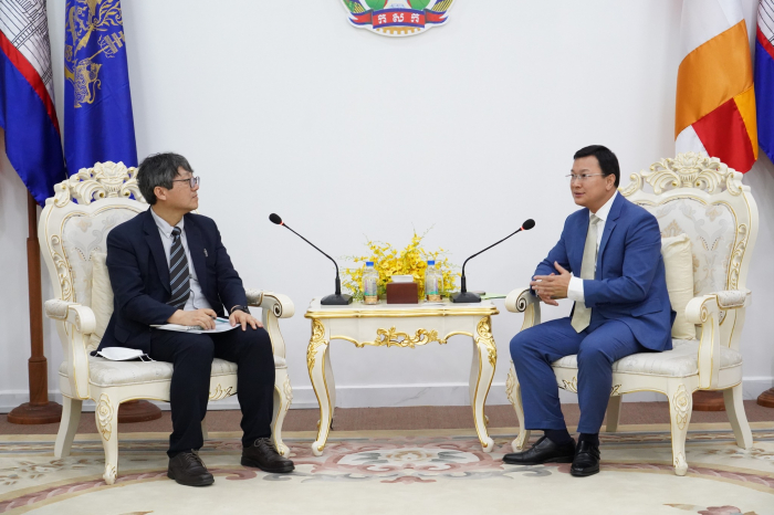 នៅរសៀលថ្ងៃទី១៥ ខែឧសភា ឆ្នាំ២០២៣ ឯកឧត្តម ឌិត ទីណា រដ្ឋមន្ត្រីក្រសួងកសិកម្ម រុក្ខាប្រមាញ់ និងនេសាទ និងថ្នាក់ដឹកនាំ បានទទួលជួបសម្តែងការគួរសម និងពិភាក្សាការងារជាមួយ Dr. Jongsoo Shin នាយកប្រចាំតំបន់អាស៊ីរបស់ IRRI នៅទីស្តីការក្រសួងកសិកម្ម រុក្ខាប្រមាញ់ និងនេសាទ។