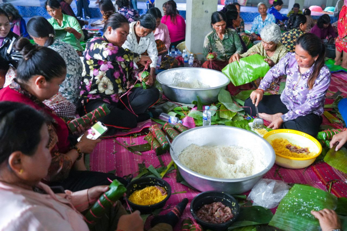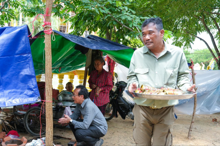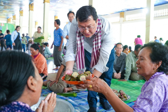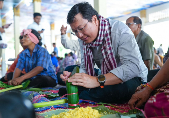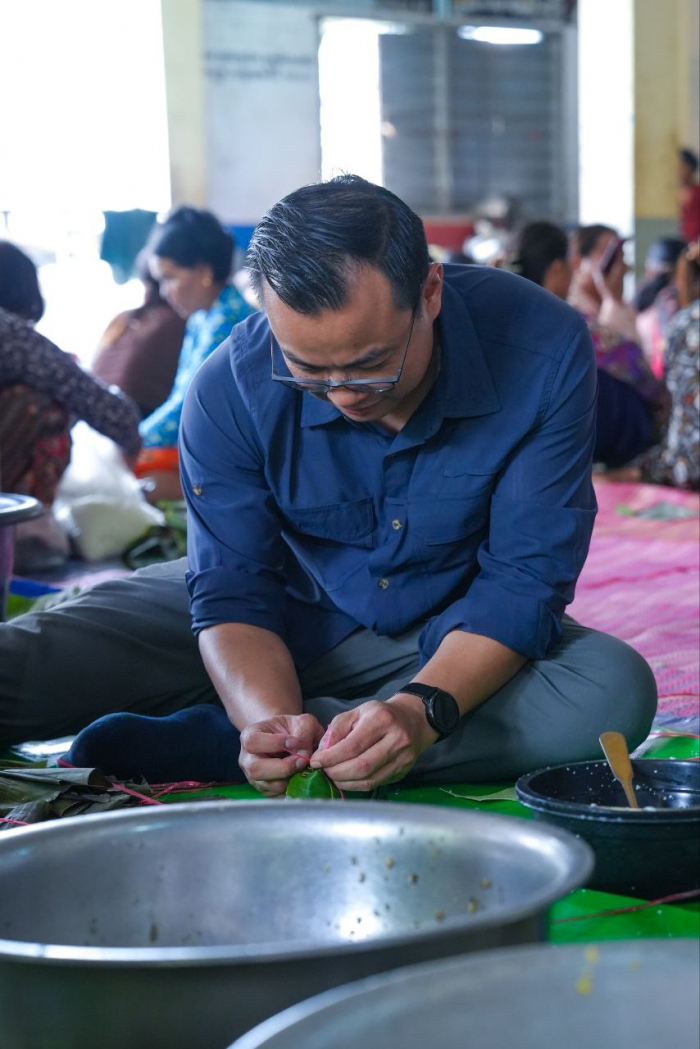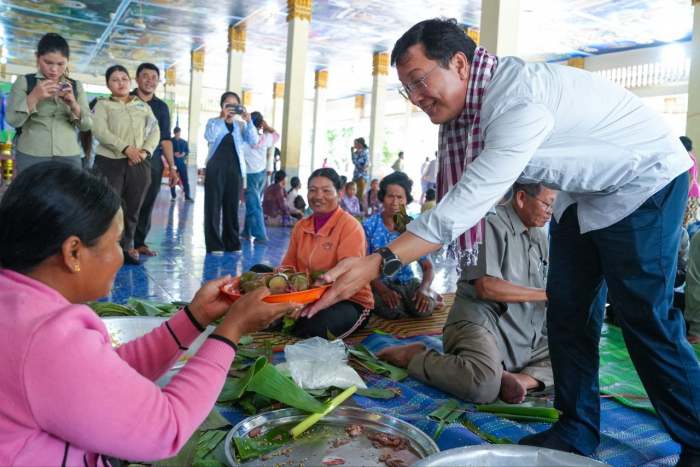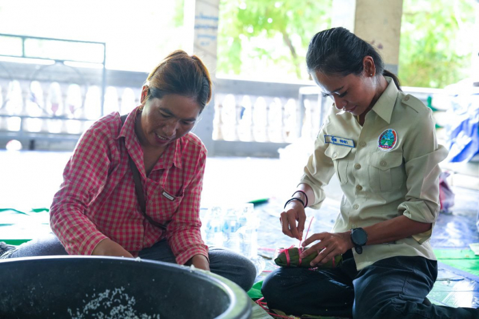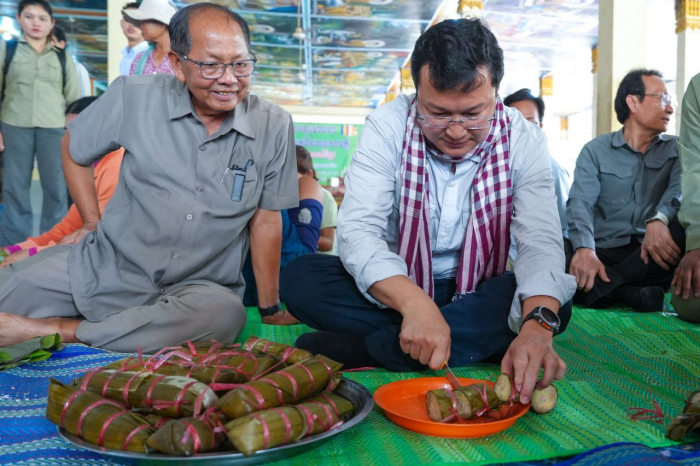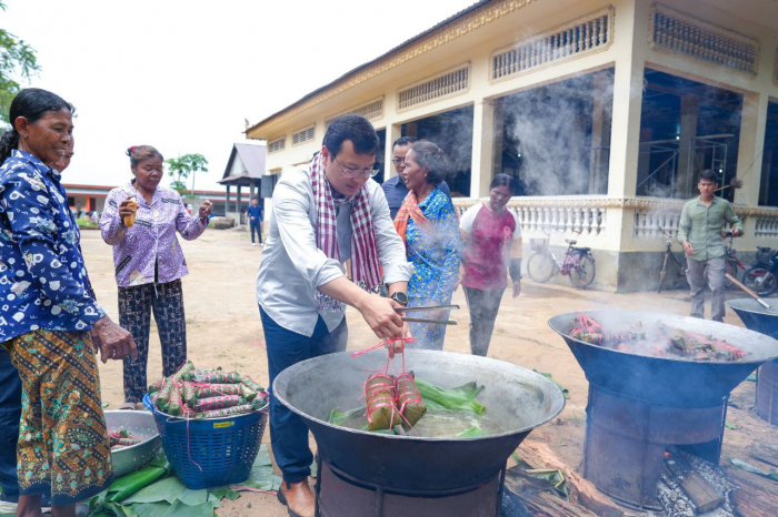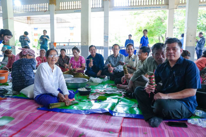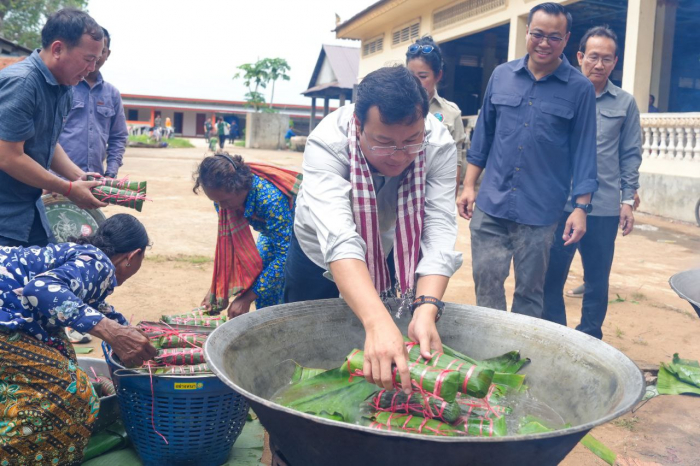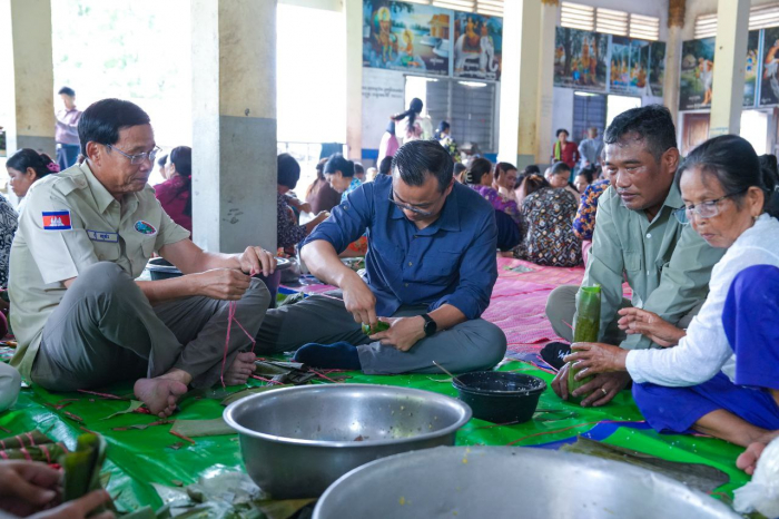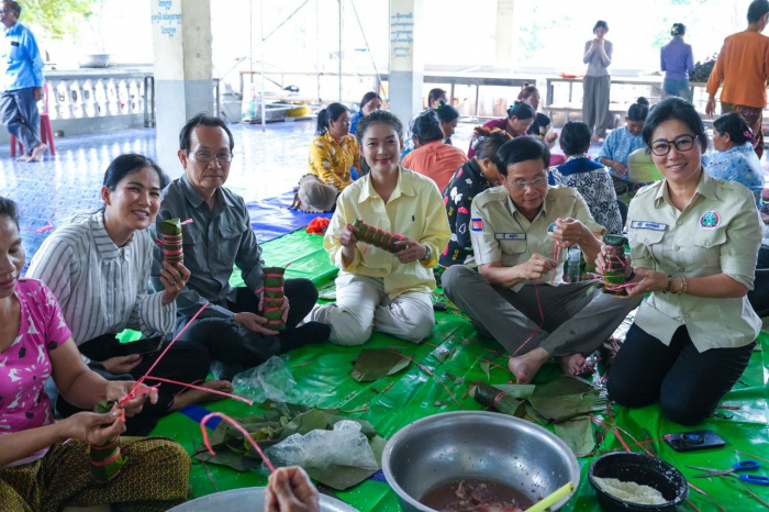 នាព្រឹកថ្ងៃពុធ ទី៣០ ខែកក្កដា ឆ្នាំ២០២៥ ឯកឧត្តម ឌិត ទីណា រដ្ឋមន្ត្រីក្រសួងកសិកម្ម រុក្ខាប្រមាញ់ និងនេសាទ និងជាប្រធានក្រុមការងាររាជរដ្ឋាភិបាលចុះមូលដ្ឋានខេត្តបន្ទាយមានជ័យ អញ្ជើញចូលរួមការវេចនំអន្សមជាមួយប្រជាពលរដ្ឋនៅស្រុកថ្មពួក សម្រាប់ផ្គត់ផ្គង់នំអន្សមចំនួន ៥០០០ ដើមជូនពុកម៉ែបងប្អូនភៀសខ្លួនមកទីតាំងសុវត្ថិភាព និងកងកម្លាំងការពារតំបន់ព្រំដែននៃខេត្តបន្ទាយមានជ័យ។