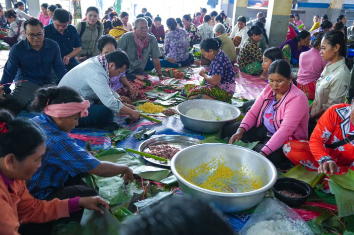 #ខ្មែរជួយខ្មែរ ៖ ឯកឧត្តមរដ្ឋមន្ត្រី ឌិត ទីណា អញ្ជើញចូលរួមការវេចនំអន្សម សម្រាប់ផ្គត់ផ្គង់ស្បៀងជូនជនភៀសសឹក និងកងកម្លាំងជួរមុខ