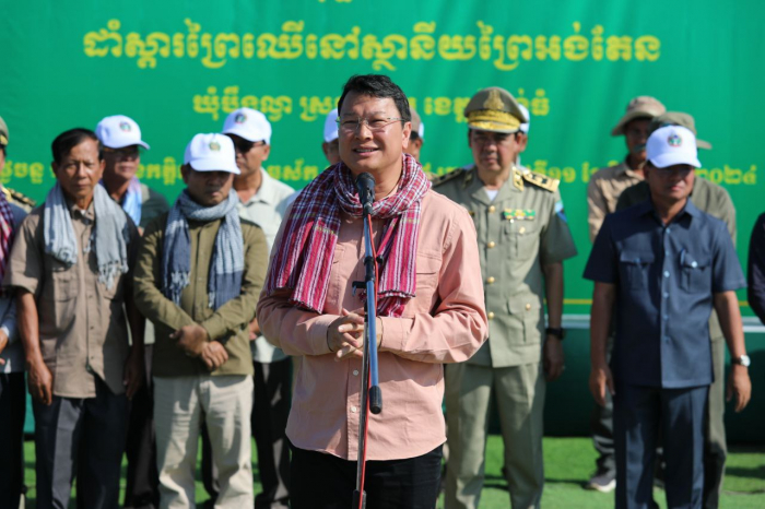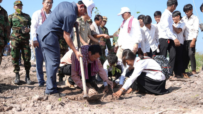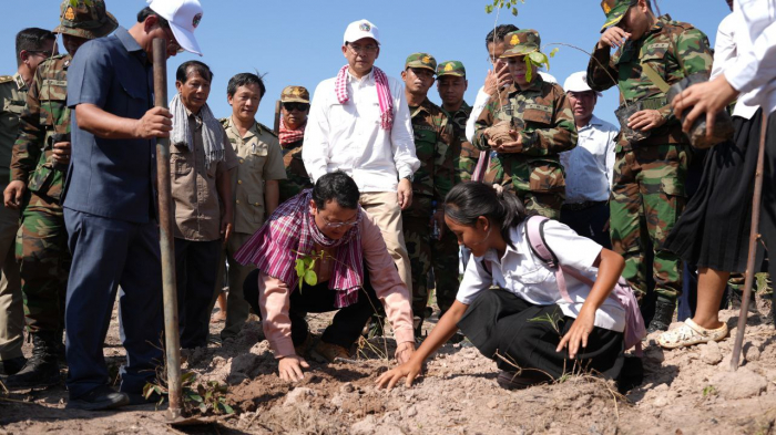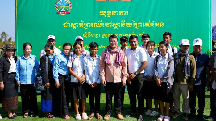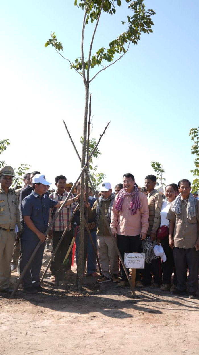 នាព្រឹកថ្ងៃទី១១ ខែវិច្ឆិកា ឆ្នាំ២០២៤ ឯកឧត្តម ឌិត ទីណា រដ្ឋមន្ត្រីក្រសួងកសិកម្ម រុក្ខាប្រមាញ់ និងនេសាទ ឯកឧត្តមបណ្ឌិត វង្ស សណ្តាប់ រដ្ឋលេខាធិការក្រសួងសេដ្ឋកិច្ច និងហរិញ្ញវត្ថុ តំណាងដ៏ខ្ពង់ខ្ពស់ ឯកឧត្តមអគ្គបណ្ឌិតសភាចារ្យ អូន ព័ន្ធមុនីរ័ត្ន ឧបនាយករដ្ឋមន្ត្រី រដ្ឋមន្ត្រីក្រសួងសេដ្ឋកិច្ច និងហិរញ្ញវត្ថុ និងឯកឧត្តម នន្ទ ចាន់វិទ្យា មេបញ្ជាការរងកងទ័ពជេីងគោក បានអញ្ជើញចូលរួមក្នុង «យុទ្ធនាការដាំស្តារព្រៃឈើនៅស្ថានីយព្រៃអង់តែន» ស្ថិតនៅឃុំបឹងល្វា ស្រុកសន្ទុក ខេត្តកំពង់ធំ។
