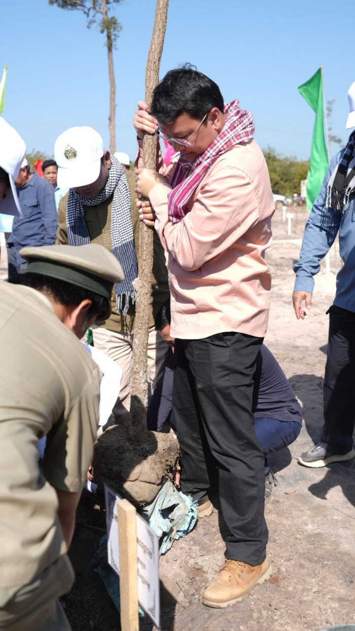 ឯកឧត្តមរដ្ឋមន្ដ្រី សង្កត់ធ្ងន់ថា ការដាំដេីមឈេីនៅទីនេះពិតជាមានសារៈសំខាន់ ដែលទាមទារការចូលរួមពីបងប្អូនយេីងទាំងអស់គ្នា ទាំងក្នុងការដាំ និងការចូលរួមថែរក្សាការពារព្រៃឈេី។