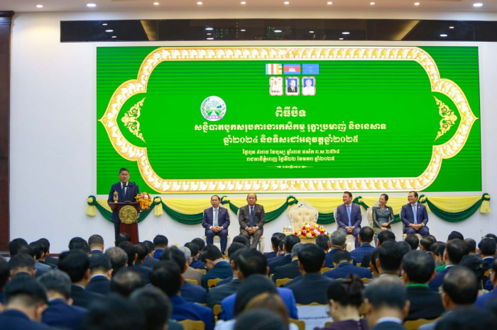ឯកឧត្តមឧបនាយករដ្ឋមន្រ្តី​ សុខ​ ចិន្តាសោភា​ តំណាងដ៏ខ្ពង់ខ្ពស់សម្តេចមហាបវរធិបតី​ ហ៊ុន​ ម៉ាណែត​ នាយករដ្ឋមន្រ្តីនៃព្រះរាជាណាចក្រកម្ពុជា​ អញ្ជេីញជាអធិបតីភាពក្នុងពិធីបិទសន្និបាតបូកសរុបការងារកសិកម្ម​ រុក្ខាប្រមាញ់​ និងនេសាទទូទាំងប្រទេសឆ្នាំ២០២៤​ និងទិសដៅអនុវត្តឆ្នាំ២០២៥