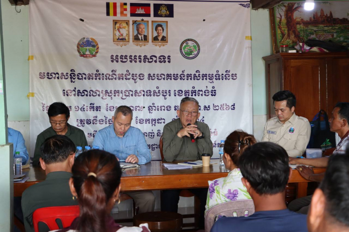 នៅថ្ងៃទី២១ ខែតុលា ឆ្នាំ២០២៥ ឯកឧត្តមបណ្ឌិត ហ៊ាន វណ្ណហន រដ្ឋលេខាធិការក្រសួងកសិកម្ម រុក្ខាប្រមាញ់ និងនេសាទ ឯកឧត្តម អាន ពេជ្រហត្ថដា រដ្ឋលេខាធិការក្រសួងធនធានទឹក និងឧតុនិយម សហប្រធាននៃក្រុមការងារត្រី-វិស័យ រួមជាមួយឯកឧត្ដម ឃឹម ហ្វីណង់ អនុរដ្ឋលេខាធិការ និងសមាជិកអចិន្រ្ដៃយ៍ សមាជិកក្រុមការងារត្រី-វិស័យ និងក្រុមលេខាធិការដ្ឋាន ក្រសួងកសិកម្ម រុក្ខាប្រមាញ់ និងនេសាទ ក្រសួងធនធានទឹក និងឧតុនិយម និងក្រសួងអភិវឌ្ឍន៍ជនបទ បានជួបសំណេះសំណាល ពិភាក្សាជាមួយប្រធាន អនុប្រធាន សមាជិកសមាជិកាសហគមន៍កសិកម្មទំនើបចំនួន២ នៅខេត្ដកំពង់ធំ ។