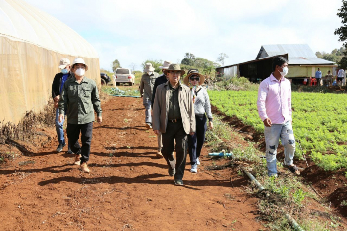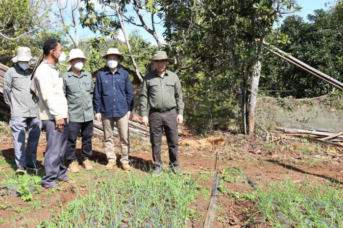 នាព្រឹក ថ្ងៃអាទិត្យ ៧រោច ខែមិគសិរ ឆ្នាំឆ្លូវ ត្រីស័ក ព.ស. ២៥៦៥ ថ្ងៃទី២៦ ខែធ្នូ ឆ្នាំ២០២១ ឆ្លៀតយកពេលឈប់សម្រាកចុងសប្តាហ៍ ឯកឧត្តមរដ្ឋមន្ត្រី វេង សាខុន អមដំណើរដោយឯកឧត្តម អ៊ុង សំអាត រដ្ឋលេខាធិការ ឯកឧត្តម ងិន ឆាយ ប្រតិភូរាជរដ្ឋាភិបាលកម្ពុជាទទួល បន្ទុកជាអគ្គនាយកនៃអគ្គនាយកដ្ឋានកសិកម្ម ឯកឧត្តម កែវ អូម៉ាលីស្ស ប្រតិភូរាជរដ្ឋាភិបាលកម្ពុជាទទួលបន្ទុកជាប្រធានរដ្ឋបាលព្រៃឈើ និងសហការីមួយចំនួនទៀត បានអញ្ជើញមកបំពេញបេសកកម្មនៅខេត្តមណ្ឌលគីរីដើម្បីពិនិត្យ តាមដាន និងវាយតម្លៃលើវឌ្ឍនភាពផលិតកម្មបន្លែ ដែលមានកម្មវិធីជាបន្តបន្ទាប់ដូចខាងក្រោម ៖