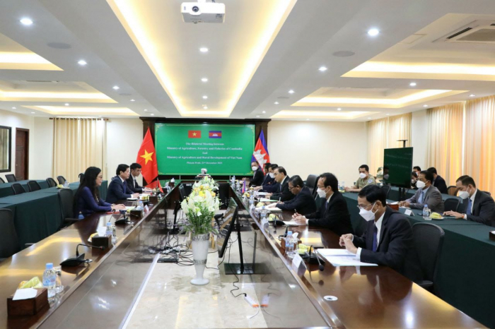 ឯកឧត្តមអនុរដ្ឋមន្ត្រីក្រសួងកសិកម្ម និងអភិវឌ្ឍន៍ជនបទនៃសាធារណរដ្ឋសង្គមនិយមវៀតណាមក៏បានថ្លែងអំណរគុណយ៉ាងជ្រាលជ្រៅចំពោះកិច្ចស្វាគមន៍ដ៏កក់ក្តៅពីសំណាក់ឯកឧត្តមរដ្ឋមន្រ្តី ក្នុងការអនុញ្ញាតឲ្យមានការជួបពិភាក្សាការងារ ក្នុងដំណើរទស្សនកិច្ចផ្លូវការដ៏មានសារៈសំខាន់នាពេលនេះ។ ឯកឧត្តមក៏បានវាយតម្លៃខ្ពស់ចំពោះកិច្ចសហប្រតិបត្តិការយ៉ាងល្អប្រសើររវាងប្រទេស និងក្រសួងទាំងពីរ ហើយសមិទ្ធិផលដែលទទួលបានពីកិច្ចសហប្រតិបត្តិការដ៏ល្អនេះបានបង្ហាញយ៉ាងច្បាស់លើទំហំ និងជញ្ជីងពាណិជ្ជកម្មនៃការនាំចេញ នាំចូលផលិតផលកសិកម្មនៃប្រទេសទាំងពីរ ដោយក្នុងរយៈពេល ១១ខែ នៃឆ្នាំ ២០២១នេះ វៀតណាមបាននាំចូលផលិតផលកសិកម្មរហូតដល់ ៣,៧៣ ពាន់លានដុល្លារអាមេរិក ហើយការនាំចេញផលិតផលកសិកម្មវៀតណាមមកកម្ពុជាបានសរុប ៣,៣២ ពាន់លានដុល្លារអាមេរិក។