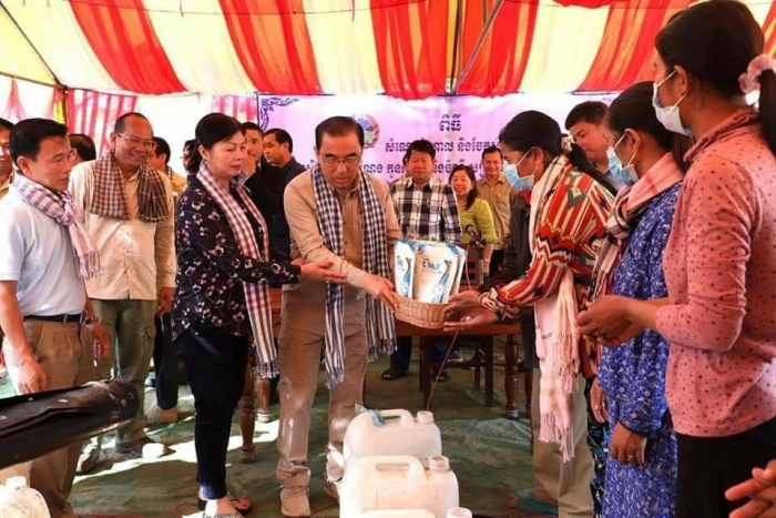 សម្រាប់ថ្ងៃនេះ កសិករចិញ្ចឹមត្រីអណ្តែង ៥៥គ្រួសារ គ្រួសារនីមួយៗទទួលបានកូនត្រី ៧០០ ក្បាល ចំណី ៤បាវ និងតង់១ ថ្នាំវីតាម៉ីន ៣កញ្ចប់ និងថវិកា ២០ ០០០រៀល។