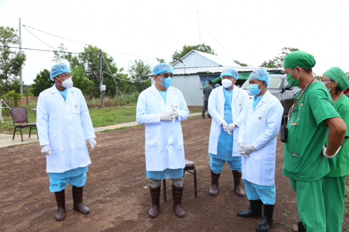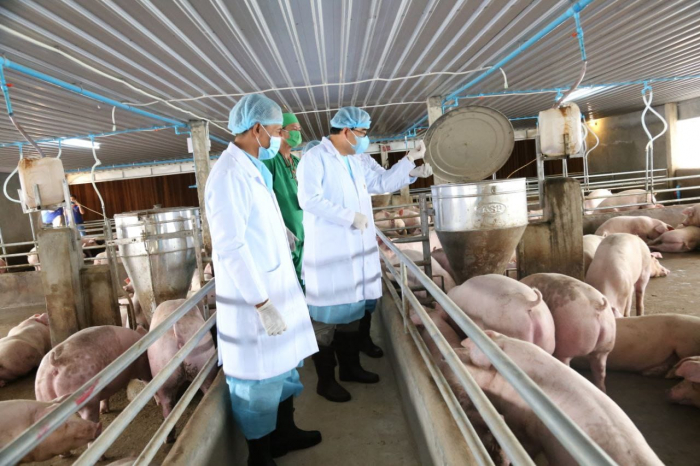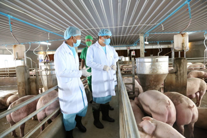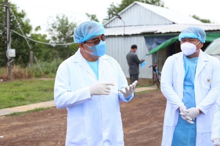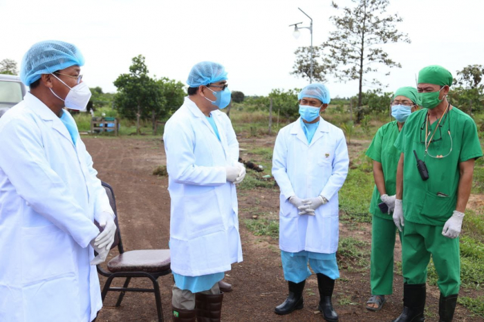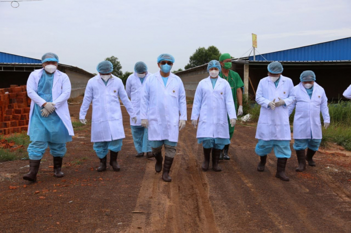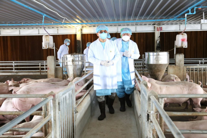 ឯកឧត្តមរដ្ឋមន្ត្រី វេង សាខុន និងសហការីបានអញ្ជើញមកពិនិត្យ និងវាយតម្លៃលើវឌ្ឍនភាពនៃផលិតកម្មចិញ្ចឹមជ្រូកសាច់ ដែលស្ថិតនៅខេត្តកំពង់ធំ