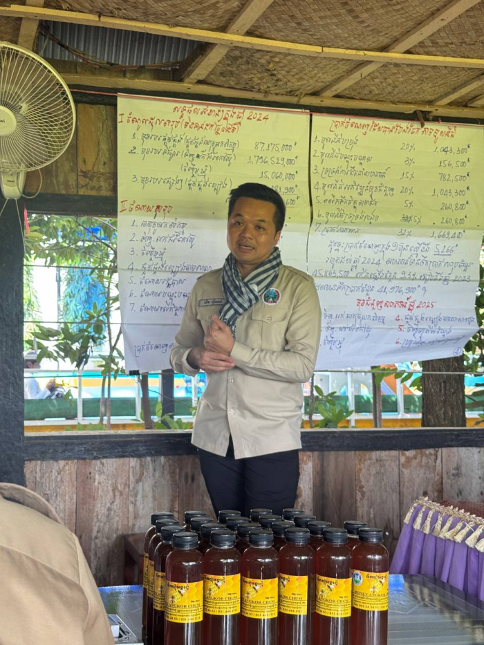 គោលបំណងនៃកិច្ចសំណេះសំណាលនេះគឺ ដើម្បីស្វែងយល់ពីការអភិវឌ្ឍ​របស់​សហគមន៍ និងបញ្ជ្រាបពីទស្សនាទានសហគមន៍កសិកម្មទំនើប ពិនិត្យលទ្ធភាព​របស់សហគមន៍ក្នុងការប្រែក្លាយជាសហគមន៍កសិកម្មកៅស៊ូគ្រួសារទំនើប។  ក្រុមការងារ និងសមាជិកសហគមន៍កៅស៊ូគ្រួសារគោកដូងអង្គរជុំ បានសន្យាថា​នឹងជួបគ្នាម្តងទៀត ដើម្បីពិភាក្សាលម្អិតក្នុងដំណើរការការងារនេះ។ បន្ទាប់មកក្រុម​ការងារបានបន្តចុះពិនិត្យជាក់ស្តែងចម្ការកៅស៊ូគ្រួសារ និងកន្លែងចិញ្ចឹមឃ្មុំ​របស់​សហគមន៍ផងដែរ៕