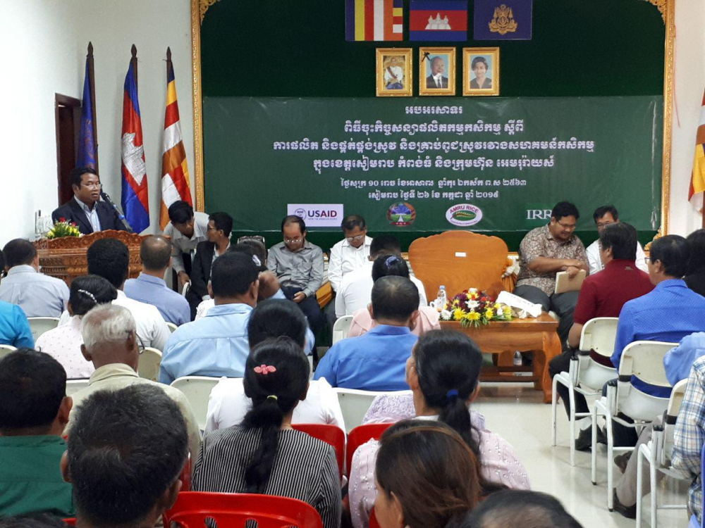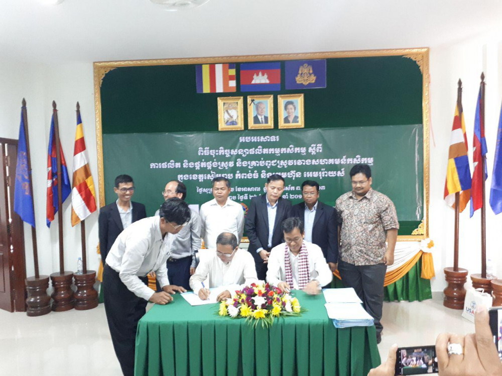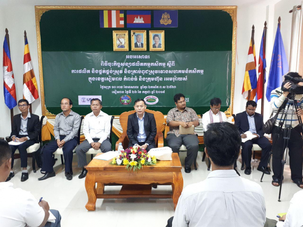 ពិធីចុះកិច្ចសន្យាផលិតកម្មកសិកម្ម ស្តីពី "ការផលិត និងផ្គត់ផ្គង់ស្រូវ និងគ្រាប់ពូជស្រូវរវាងសហគមន៍កសិកម្មក្នុងខេត្តសៀមរាបនិងកំពង់ធំ និងក្រុមហ៊ុនអេមរុរ៉ាយស៍"