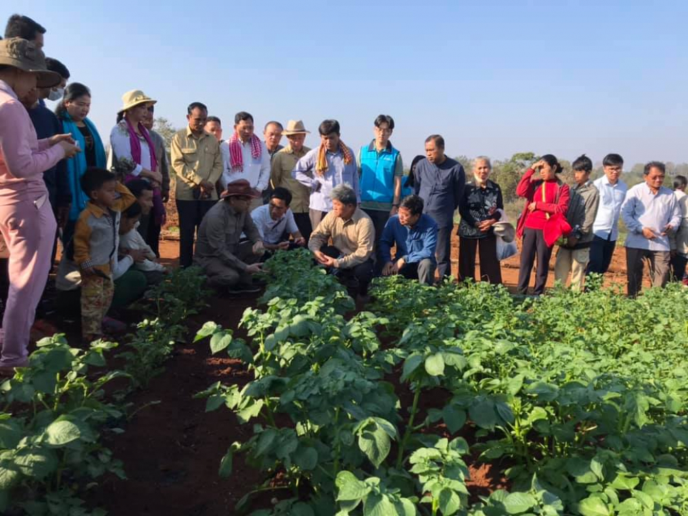 ប្រសាសន៍ដ៏មានអត្ថន័យរបស់ឯកឧត្តមរដ្ឋមន្ត្រីថា ៉កម្ពុជាដាំបានហើយ ៉ និយាយដោយទឹកចិត្តសប្បាយរីករាយពេលឃើញដំឡូងបារាំងផ្តល់ផលបានល្អយ៉ាងដូច្នេះ។ នាឱកាសនេះ ឯកឧត្តមរដ្ឋមន្ត្រីបានធ្វើការវាយតម្លៃខ្ពស់ចំពោះសាកលវិទ្យាល័យភូមិន្ទកសិកម្ម អ្នកស្រាវជ្រាវ និងអង្គការ KOPIA ជាពិសេសម្ចាស់ចំការដែលបានសហការធ្វើការសិក្សាស្រាវជ្រាវ រហូតទទួលបានលទ្ធផលជាផ្លែផ្កាដូចយើងបានឃើញនាពេលនេះ។ លោកសូមឱ្យក្រុមការងារបន្តស្រាវជ្រាវបន្ថែមទៀត ប្រយោជន៍ស្វែងរកលទ្ធផលល្អមួយតាមការរំពឹងទុក ដើម្បីធ្វើការផ្សព្វផ្សាយឱ្យកសិករដាំដំណាំនេះ បានទូលំទូលាយទូទាំងខេត្តមណ្ឌលគីរី ធានាបរិមាណផ្គត់ផ្គង់តម្រូវការទីផ្សារ កាត់បន្ថយការនាំចូល និងចូលរួមលើកកម្ពស់កម្រិតជីវភាពរបស់បងប្អូនជាជនជាតិភាគតិចនាពេលអនាគត។ គួរស្វែងរកដៃគូវិនិយោគ ដើម្បីិធានាដល់និរន្តរភាពផលិត ផ្គត់ផ្គង់ គុណភាព និងអនាម័យ ដោយត្រូវអនុវត្តតាមផលិតកម្មកសិកម្មតាមកិច្ចសន្យា។ ឯកឧត្តមក៏បានស្នើឱ្យសហគមន៍កសិកម្ម និងសហគមន៍ព្រៃឈើងាកមកចាប់អារម្មណ៍ដាំដំឡូងបារាំងដើម្បីកែលម្អកម្រិតជីវភាព បង្កើតអាជីពថ្មី កាត់បន្ថយការពឹងអាស្រ័យតែលើផល និងអនុផលព្រៃឈើ។ ឯកឧត្តមបានស្នើឱ្យគម្រោងសហការជាមួយម្ចាស់ចំការពិនិត្យលទ្ធភាពរៀបចំជាតំបន់ទេសចរណ៍ ផ្តល់ឱកាសឱ្យភ្ញៀវដកដំឡូង និងទិញផលដំឡូង ដើម្បីបង្កើតការងារបន្ថែម និងបង្កើនចំណូលឱ្យមាននិរន្តរភាព។