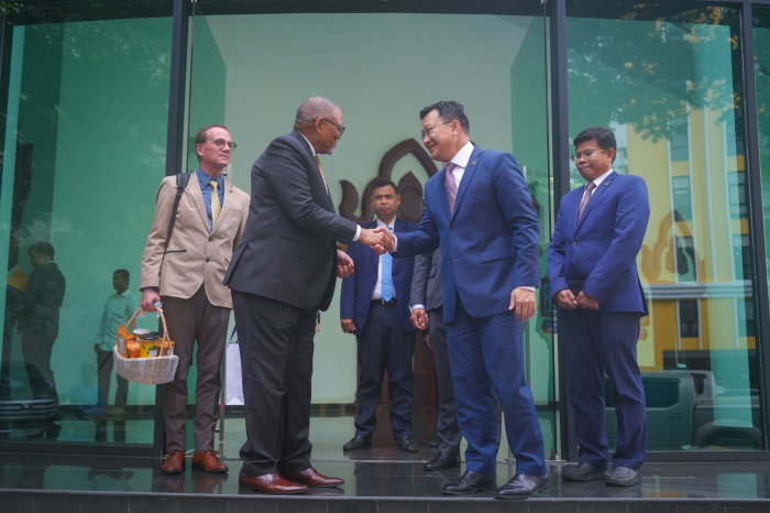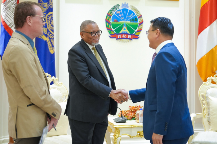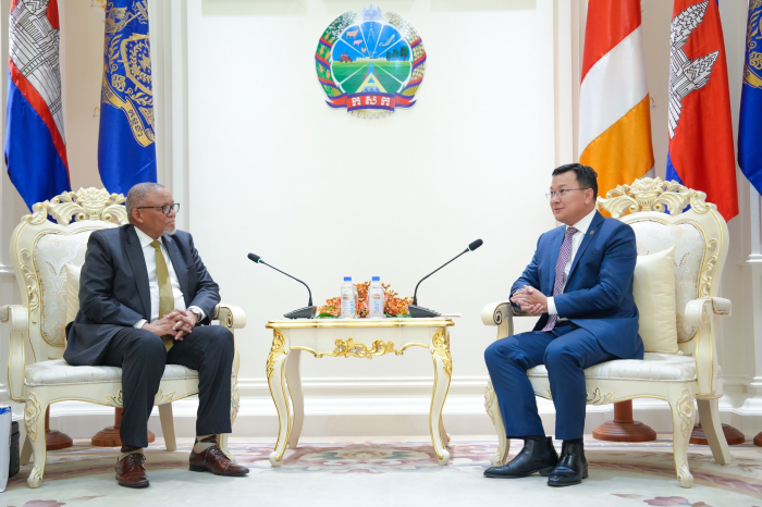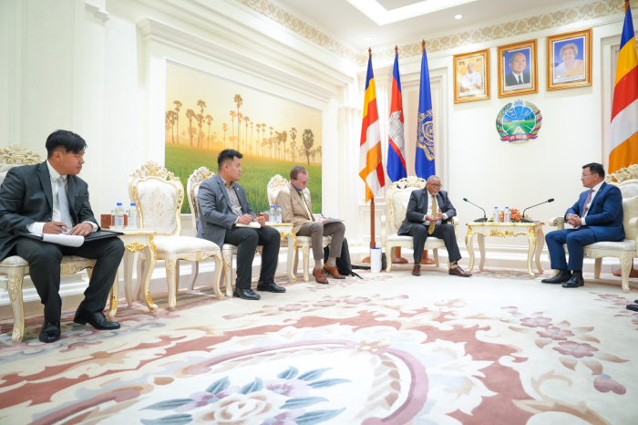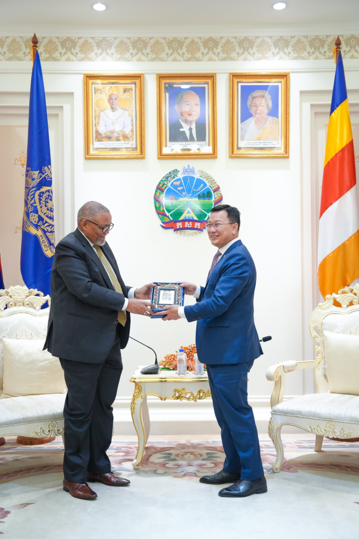 នារសៀលថ្ងៃទី៥ ខែកញ្ញា ឆ្នាំ២០២៥ ឯកឧត្តម ឌិត ទីណា រដ្ឋមន្រ្តីក្រសួងកសិកម្ម រុក្ខាប្រមាញ់ និងនេសាទ ទទួលជួបជាមួយ ឯកឧត្តម Darkey Africa ឯកអគ្គរដ្ឋទូតអាហ្វ្រិកខាងត្បូងប្រចាំកម្ពុជា ក្នុងជំនួបសម្តែងការគួរសម និងពិភាក្សាការងារ នៅទីស្តីការក្រសួងកសិកម្ម រុក្ខាប្រមាញ់ និងនេសាទ។