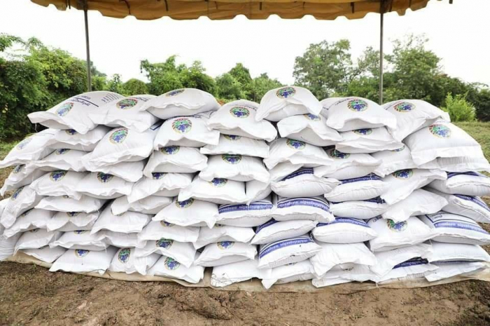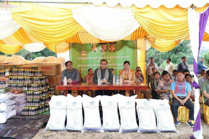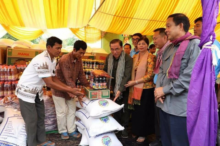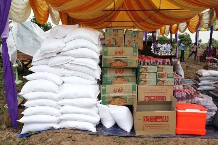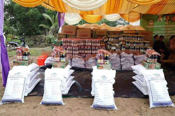 សូមជម្រាបជូនថាអំណោយគ្រឿងឧបភោគ បរិភោគទាំងអស់នេះមានអង្ករ ១៤,៥តោន សាច់ ក្រក ៥៨០គ.ក្រ មី ៥៨០កេះ ទឹកស៊ីអីវ ៥៨០យួរ ទឹកត្រី ៥៨០យួរ ដោយក្នុងមួយគ្រួសារទទួលបានពូជស្រូវ ១០០គ.ក្រ អង្គរ ២៥គ.ក្រ សាច់ក្រក ១គ.ក្រ មី ១កេះ ទឹកស៊ីអីវ ១យួរ និងទឹកត្រី ១យួរ។