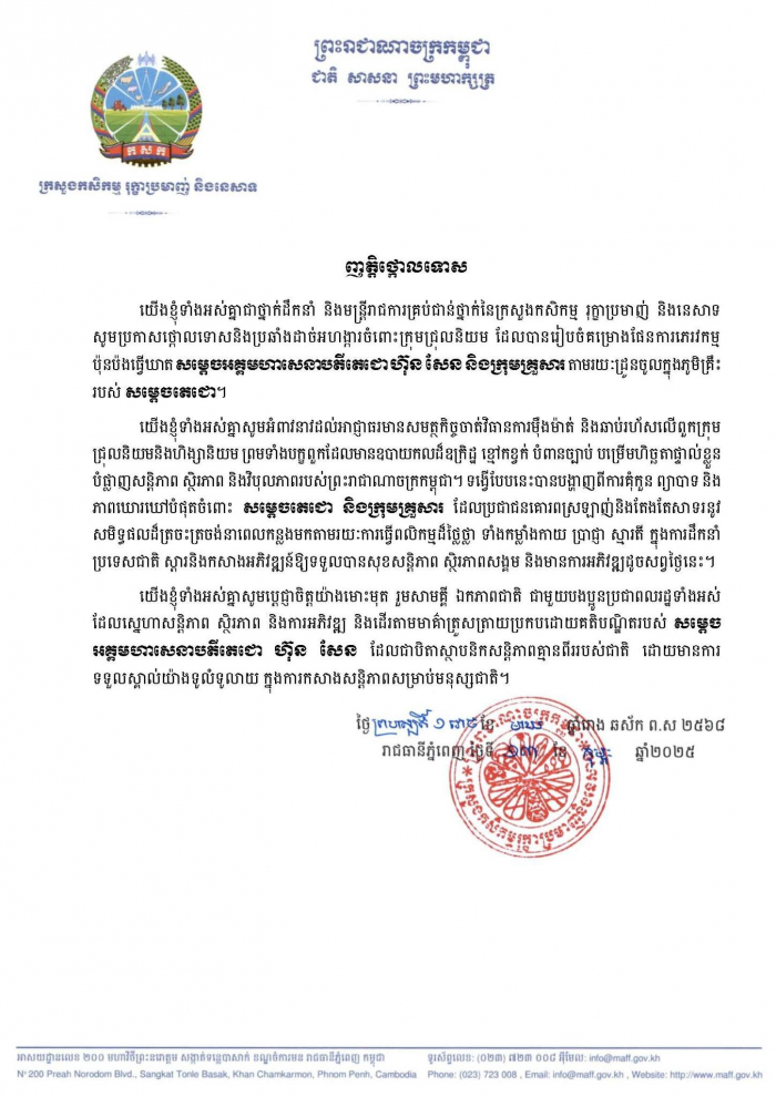 ញត្តិថ្កោលទោស ចំពោះគម្រោងវាយប្រហារដោយដ្រូនចូលភូមិគ្រឹះ សម្តេចអគ្គមហាសេនាបតីតេជោ ហ៊ុន សែន ប្រធានព្រឹទ្ធសភា និងជាប្រធានក្រុមឧត្តមប្រឹក្សាផ្ទាល់ព្រះមហាក្សត្រ នៃព្រះរាជាណាចក្រកម្ពុជា