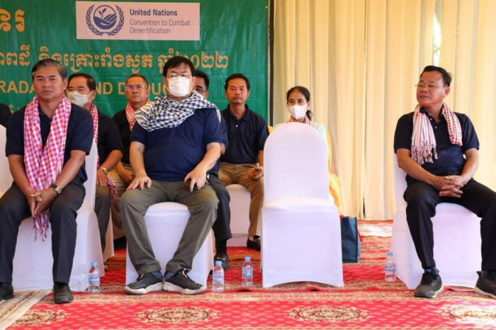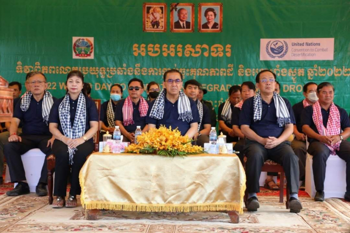 នៅព្រឹកថ្ងៃសុក្រ ៣រោច ខែជេស្ឋ ឆ្នាំខាល ចត្វាស័កព.ស. ២៥៦៦ ត្រូវនឹងថ្ងៃទី១៧ ខែមិថុនា ឆ្នាំ២០២២ ទិវាពិភពលោកប្រយុទ្ធប្រឆាំងនឹងការធ្លាក់ចុះគុណភាពដី និងគ្រោះរំាងស្ងួត ក្រោមពាក្យស្លោក “រួមគ្នាប្រយុទ្ធប្រឆំាងនឹងគ្រោះរំាងស្ងួត” ឆ្នាំ២០២២ បានប្រារព្វនៅក្នុងសហគមន៍ព្រៃឈើឃ្មុំស្រករថ្លុកឬស្សី ភូមិត្រពាំងថ្ម ឃុំត្រពាំងឬស្សី ស្រុកកំពង់ស្វាយ ខេត្តកំពង់ធំ ស្ថិតក្រោមអធិបតីភាពឯកឧត្តម វេង សាខុន រដ្ឋមន្ត្រីក្រសួងកសិកម្ម រុក្ខាប្រមាញ់ និងនេសាទ និងឯកឧត្តម ងួន រតន: អភិបាលនៃគណ:អភិបាលខេត្តកំពង់ធំ និងមានវត្តមានឯកឧត្តម លោកជំទាវជាថ្នាក់ដឹកនាំក្រសួងកសិកម្ម រុក្ខាប្រមាញ់ និងនេសាទ ឯកឧត្តមអភិបាលរងខេត្ត ឯកឧត្តម លោកជំទាវ លោក លោកស្រី នាងកញ្ញា ភ្ញៀវកិត្តិយសជាតិ-អន្តរជាតិ ថ្នាក់ដឹកនាំមន្ទីរជុំវិញខេត្ត កងកំលាំងប្រដាប់អាវុធ អាជ្ញាធរមូលដ្ឋាន និងបងប្អូនប្រជាពលរដ្ឋប្រមាណ ៣០០នាក់។ បន្ទាប់ពីបានស្តាប់យ៉ាងយកចិត្តទុកដាក់មតិស្វាគមន៍ និងរបាយការណ៍ដ៏មានខ្លឹមសារជុំវិញស្ថានភាពជារួមនៃខេត្តកំពង់ធំដោយសង្ខេម និងចំណាច់អារម្មណ៍ទាក់ទងនឹងប្រធានបទខាងលើរបស់ឯកឧត្តមអភិបាលនៃគណ:អភិបាលខេត្តរួចមក ឯកឧត្តមរដ្ឋមន្ត្រីបានវាយតម្លៃខ្ពស់ចំពោះគណ:អភិបាលខេត្ត ស្រុក ដៃគូពាក់ព័ន្ធទាំងអស់ ដែលបានរៀបចំពិធីដ៏មានអត្ថន័យនេះឡើងទទួលបានលទ្ធផលយ៉ាងល្អប្រសើរ នៅលើទឺកដីដែលសម្បូរទៅដោយព្រៃឈើ ជម្រកសត្វព្រៃ ធនធានធម្មជាតិ និងសំណង់ប្រាសាទបូរាណសំបូរព្រៃគុកដែលជាបេតិកភណ្ឌពិភពលោក។ ឆ្លៀតក្នុងឱកាសនេះ ឯកឧត្តមរដ្ឋមន្ត្រីបានជម្រាបជូនអង្គពិធីអំពីខ្លឹមសារ និងអត្ថន័យនៃទិវាពិភព លោកប្រយុទ្ធប្រឆាំងនឹងការធ្លាក់ចុះគុណភាពដី និងគ្រោះរំាងស្ងួត ក្រោមពាក្យស្លោក “រួមគ្នាប្រយុទ្ធប្រឆំាងនឹងគ្រោះរំាងស្ងួត” ថាទិវានេះ តែងតែប្រារព្ធធ្វើជាសាកលរៀងរាល់ឆ្នាំនៅថ្ងៃទី១៧ ខែមិថុនា ចាប់តាំងពីឆ្នាំ១៩៩៥ តរៀងមក។ ឯកឧត្តមរដ្ឋមន្ត្រីបានរំលេចជូនអង្គពិធីជ្រាបយ៉ាងច្បាស់អំពីមូលហេតុផ្សេងៗ ដែលបង្កឲ្យមានការធ្លាក់ចុះគុណភាពដី និងគ្រោះរាំងស្ងួត ព្រមទាំងផលវិបាកផ្សេងៗ ដែលជះឥទ្ធិពលមកលើសត្តនិករនៅលើភពផែនដី ពិសេសជីវភាពរស់នៅ និងសន្តិសុខស្បៀង។ ព្រឹត្តិការណ៍នាព្រឹកនេះ ចង់បង្ហាញឲ្យឃើញ ប្រាប់ឲ្យដឹង និងទាក់ទាញចំណាប់អារម្មណ៍ពិភពលោកទៅលើគ្រោះរាំងស្ងួត និងគ្រោះទឹកជំនន់ដែលពិភពលោក ក៏ដូចជាកម្ពុជាបាននិងកំពុងជួបប្រទះរៀងរាល់ឆ្នាំ។ ជាងនេះទៅទៀត កង្វះខាតស្បៀងអាហារ និងទឹក ការធ្លាក់ចុះគុណភាពដី ភ្លើងឆេះព្រៃ ជំងឺឆ្លងសត្វ-ដំណាំ សត្វល្អិតចង្រៃបំផ្លាញផលដំណាំ គឺភាគ ច្រើនបណ្តាលមកពីគ្រោះរាំងស្ងួតធ្ងន់ធ្ងរ និងមានរយ:ពេលយ