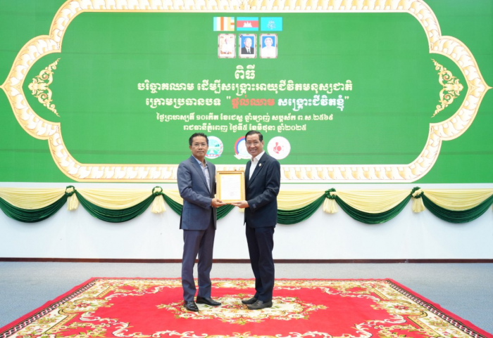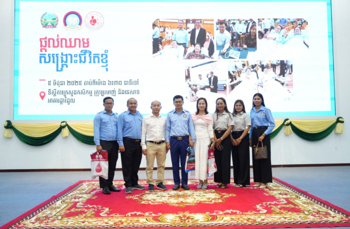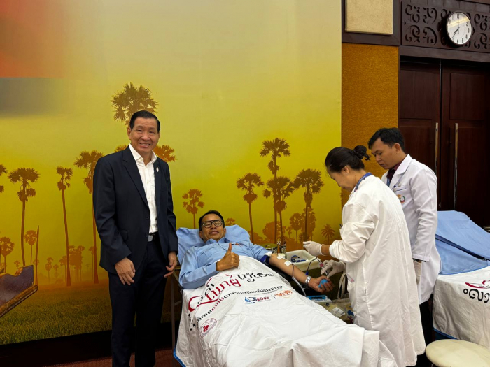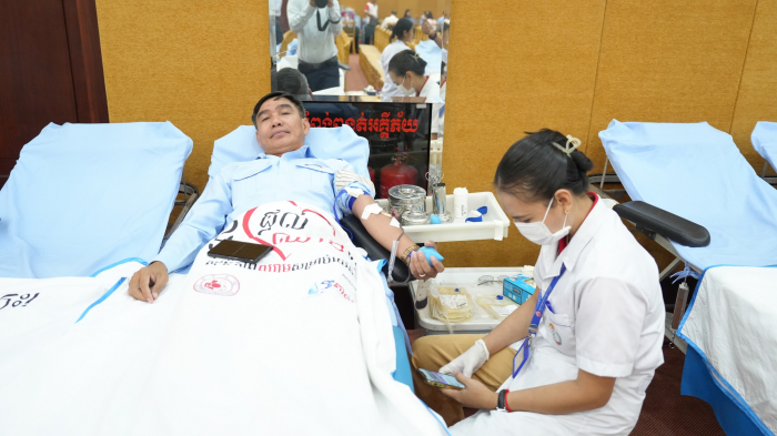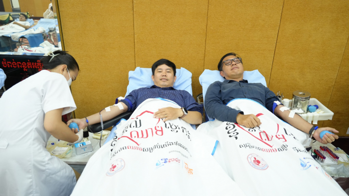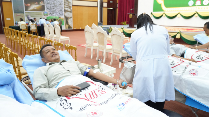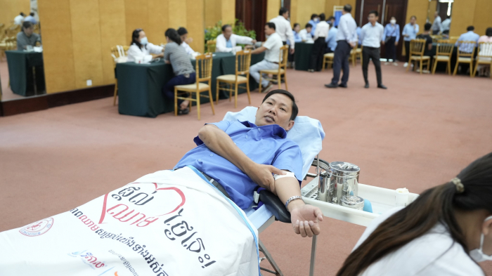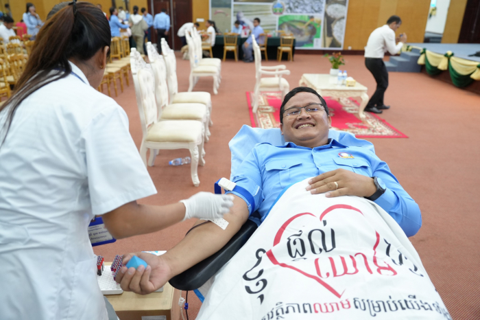 នាព្រឹកថ្ងៃទី៥ ខែមិថុនា ឆ្នាំ២០២៥ ឯកឧត្តម គង់ ច័ន្ទវាសនា រដ្ឋលេខាធិការ និងជាតំណាងដ៏ខ្ពង់ខ្ពស់ ឯកឧត្តម ឌិត ទីណា រដ្ឋមន្ត្រីក្រសួងកសិកម្ម រុក្ខាប្រមាញ់ និងនេសាទ បានអញ្ជើញជាអធិបតីក្នុងពិធីបរិច្ចាគឈាម ក្រោមប្រធានបទ "ផ្តល់ឈាម សង្គ្រោះជីវិតខ្ញុំ" នៅទីស្ដីការក្រសួងកសិកម្ម រុក្ខាប្រមាញ់ និងនេសាទ។