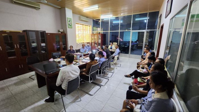 នាយកដ្ឋានសវនកម្មផ្ទៃក្នុង៖ នៅថ្ងៃព្រហស្បតិ៍ ១៤ រោច ខែពិសាខ ឆ្នាំថោះ បញ្ចស័ក ព.ស. ២៥៦៧ ត្រូវនឹងថ្ងៃទី ១៨ ខែ ឧសភា ឆ្នាំ២០២៣ លោកស្រី ងិន សូនាថ ប្រធាននាយកដ្ឋានសវនកម្មផ្ទៃក្នុង បានដឹកនាំកិច្ចប្រជុំពិភាក្សាលទ្ធផលចុះពិនិត្យលើការអនុវត្តថវិកាចំណូល ចំណាយ ប្រចាំត្រីមាសទី១ ឆ្នាំ២០២៣ នៅអគ្គនាយកដ្ឋានកសិកម្ម អគ្គនាយកដ្ឋានកៅស៊ូ នាយកដ្ឋានគណនេយ្យ ហិរញ្ញវត្ថុ នាយកដ្ឋានផ្សព្វផ្សាយកសិកម្ម រុក្ខាប្រមាញ់ និងនេសាទ នាយកដ្ឋាននីតិកម្មកសិកម្ម នាយកដ្ឋានផែនការ ស្ថិតិ និងមជ្ឈមណ្ឌលព័ត៌មាន និងឯកសារកសិកម្ម ដោយមានការចូលរួមពីលោកអនុប្រធាននាយកដ្ឋាន លោក លោកស្រីប្រធាន និងអនុប្រធានការិយាល័យ និងមន្រ្តីក្រោមឱវាទនាយកដ្ឋាន។