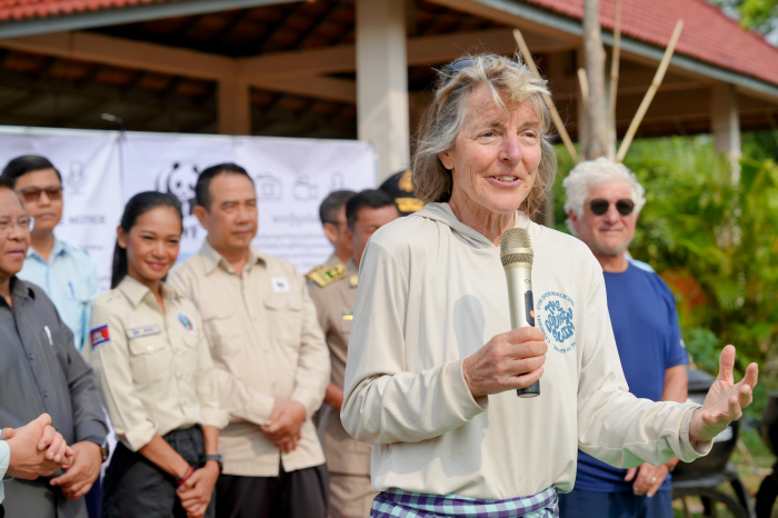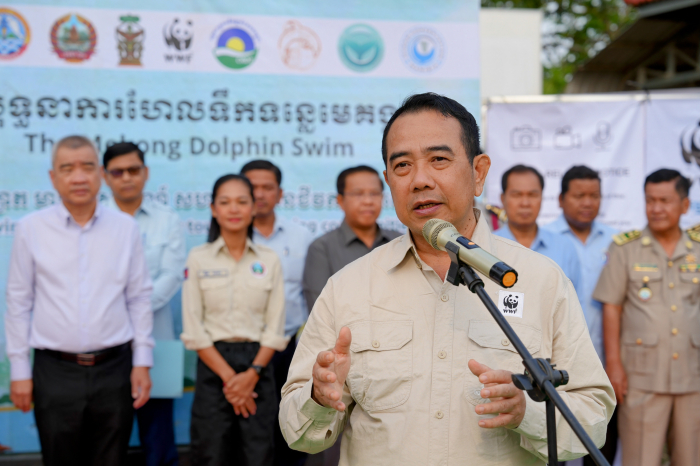 នៅព្រឹកថ្ងៃទី២០ ខែមីនា ឆ្នាំ២០២៥ លោកជំទាវ អ៊ឹម រចនា អនុរដ្ឋលេខាធិការក្រសួងកសិកម្ម រុក្ខាប្រមាញ់ និងនេសាទ អញ្ជើញជាគណៈអធិបតី ក្នុងពិធីប្រកាសបើកកម្មវិធីប្រគល់សម្ភារបរិស្ថាន និងចូលរួមគ្នាសំអាតបរិស្ថាននៅរមណីដ្ឋានអន្លង់ផ្សោតកាំពី ក្នុងព្រឹត្តិការណ៍ «យុទ្ធនាការហែលទឹកទន្លេមេគង្គ ចម្ងាយ១២០គីឡូម៉ែត្រ ដើម្បីគាំទ្រសត្វផ្សោតកម្ពុជា»។