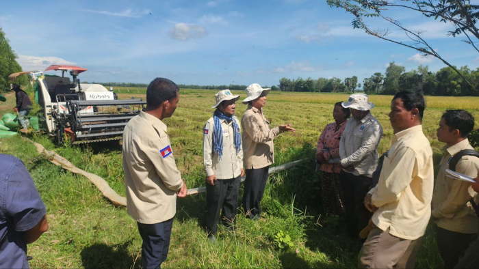 នៅថ្ងៃទី១៤ ខែសីហា ឆ្នាំ២០២៥ ឯកឧត្តម សុខ វិសាល អនុរដ្ឋលេខាធិការក្រសួងកសិកម្ម រុក្ខាប្រមាញ់ និងនេសាទ អញ្ជើញដឹកនាំក្រុមការងាររួមដំណើរដោយ លោក ញ៉ិប ស្រ៊ន ប្រធានមន្ទីរកសិកម្ម រុក្ខាប្រមាញ់ និងនេសាទខេត្តតាកែវ អាជ្ញាធរស្រុក-ឃុំ មន្ត្រីកសិកម្មឃុំ ចុះពិនិត្យការប្រមូលផលស្រូវ នៅក្នុងឃុំធ្លក ស្រុកទ្រាំង និងឃុំរមេញ ស្រុកកោះអណ្ដែត ខេត្តតាកែវ។
