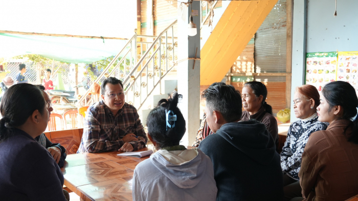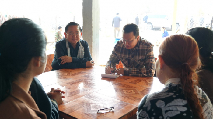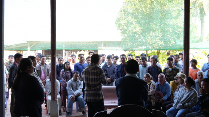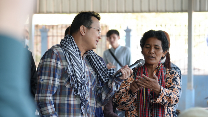 នាព្រឹកថ្ងៃទី១៤ ខែមករា ឆ្នាំ២០២៥ ឯកឧត្តម ឌិត ទីណា រដ្ឋមន្ត្រីក្រសួងកសិកម្ម រុក្ខាប្រមាញ់ និងនេសាទ បានអញ្ជេីញជួបសំណេះសំណាលជាមួយបងប្អូនប្រជាកសិករ ដែលមានបញ្ហាតម្លៃស្រូវ ស្ថិតនៅភូមិព្រៃដំរី ឃុំព្រែកតូច ស្រុកមោងឬស្សី ខេត្តបាត់ដំបង។