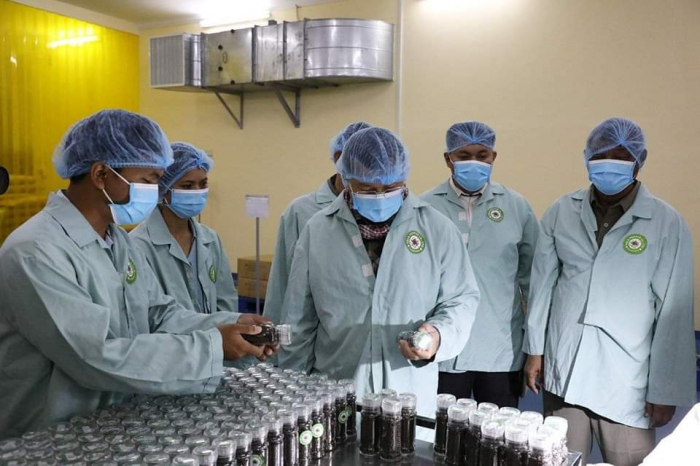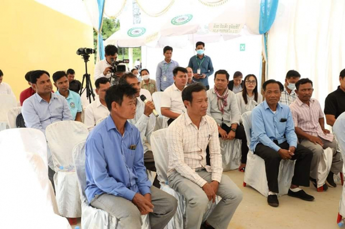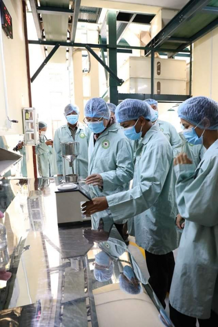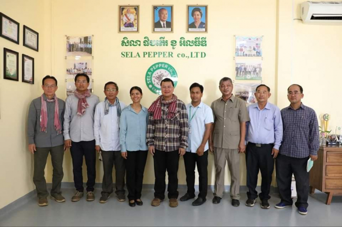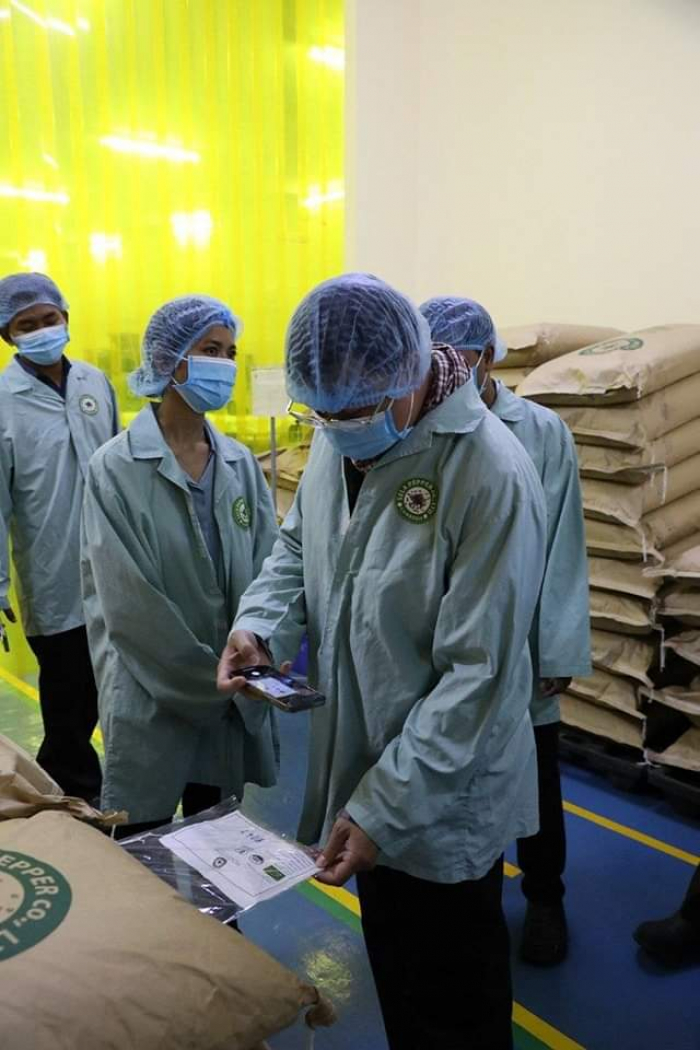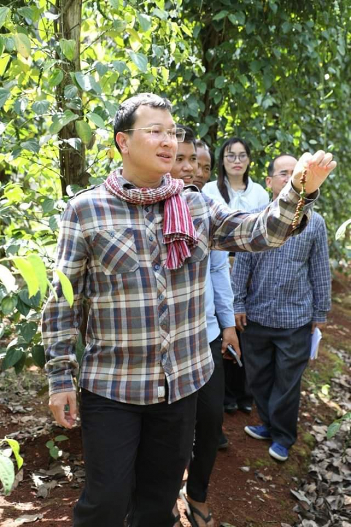 ឯកឧត្តម ឌិត ទីណា រដ្ឋមន្ត្រីក្រសួងកសិកម្ម រុក្ខាប្រមាញ់ និងនេសាទ ចុះទស្សនកិច្ច ក្រុមហ៊ុនផលិតម្រេចសរីរាង្គ SELA Pepper ស្ថិតនៅ ស្រុកមេមត់ ខេត្តត្បូងឃ្មុំ ================ នាព្រឹកថ្ងៃសុក្រ ០៦កើត ខែមាឃ ឆ្នាំខាល ចត្វាស័ក ព.ស.២៥៦៦ ត្រូវនឹងថ្ងៃទី២៧ ខែមករា ឆ្នាំ២០២៣ ឯកឧត្តមរដ្ឋមន្ត្រី និងថ្នាក់ដឹកនាំបានទស្សនកិច្ចនៅក្រុមហ៊ុន Sela Pepper ដែលជាក្រុមហ៊ុនផលិតម្រេចសរីរាង្គស្ថិតនៅស្រុកមេមត់ខេត្តត្បូងឃ្មុំ។ តាមរយៈកម្មវិធីទស្សនកិច្ចនេះ ឯកឧត្តម បានស្វែងយល់ពីខ្សែច្រវាក់នៃផលិតកម្មតាំងពីការសម្អាតរហូត ដល់ការវេចខ្ចប់ ព្រមទាំងស្តង់ដាអនាម័យ និងភូតគាមអនាម័យនៃម្រេចសរីរាង្គ។ ម្រេចសរីរាង្គខ្មែរមានការពេញនិយមមានតម្រូវការខ្ពស់ និងទាមទារការផ្សព្វផ្សាយបន្ថែមឱ្យកាន់តែទូលំទូលាយដើម្បីនាំចេញ។ ក្នុងការជួបសំណេះសំណាលជាមួយសមាគមអ្នកដាំម្រេចសរីរាង្គ ឯកឧត្តម ក៏បានលើកទឹកចិត្តកសិករឱ្យធ្វើការដាំម្រេចតាមលក្ខណៈបច្ចេកទេស ដើម្បីទទួលបានគុណភាពស្តង់ដាល្អដែលឆ្លើយតបនឹងតម្រូវការទីផ្សារ និងមានតម្លៃខ្ពស់។ លើសពីនេះទៀត ត្រូវធ្វើការពិនិត្យគុណភាពម្រេចនៅមន្ទីរពិសោធន៍ឱ្យបានត្រឹមត្រូវមុននឹងធ្វើការនាំចេញ។ ជាមួយគ្នានេះដែរ ឯកឧត្តមរដ្ឋមន្ត្រី បានស្នើឱ្យអគ្គនាយកដ្ឋានកសិកម្មសហការជាមួយមន្ទីរកសិកម្មខេត្តត្បូងឃ្មុំឱ្យយកចិត្តទុកដាក់ពន្យល់ ណែនាំ ដើម្បីឱ្យពួកគាត់អាចទទួលវិញ្ញាបនបត្រការអនុវត្តកសិកម្មល្អ GAP នាពេលខាងមុខនេះ៕