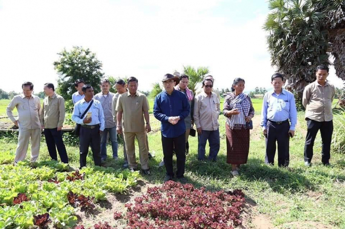 ឯកឧត្តមរដ្ឋមន្រ្តី និងឯកឧត្តមអភិបាលនៃគណ:អភិបាលខេត្ត ព្រមជាមួយសហការីបានបន្តដំណើរមកឃុំកាហែង ស្រុកសំរោងទងដើម្បីពិនិត្យការដាំបន្លែរបស់ប្រជាកសិករដែលជាសមាជិកនៃសហគមន៍បន្លែចម្រុះជាយក្រុង។ ពិនិត្យលើទិដ្ឋភាពជាក់ស្តែង បងប្អូនប្រជាកសិករនៅឃុំនេះ ភាគច្រើននិយមដាំបន្លែសាលាដ ផ្ទី និងត្រកួន ដែលជាប្រភពចំណូលបន្ថែមសម្រាប់លើកស្ទួយជីវភាពគ្រួសារ ក្រៅពីដំណាំស្រូវ។ បងស្រី យូ លន់ ប្រធានសហគមន៍បន្លែចម្រុះជាយក្រុង បានឲ្យដឹងថា ដោយទទួលបានការគាំទ្រ និងបច្ចេកទេសពីគម្រោង ASPIRE ប្រជាកសិករជាង ១០០គ្រួសារ បានផលិតបន្លែសុវត្ថិភាព រួចលក់ឲ្យឈ្មួញកណ្តាលក្នុងស្រុកដោយក្នុង១ខែ មួយគ្រួសារអាចរកចំណូលបានពី ២-៣លានរៀល (អាស្រ័យតាមរដូវ និងការយកចិត្តទុកដាក់របស់គ្រួសារនីមួយៗផងដែរ)។