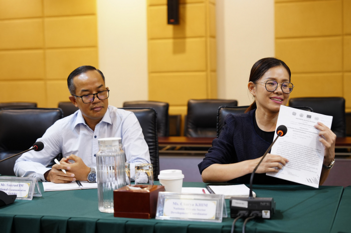 នៅថ្ងៃទី០៧ ខែមិថុនា ឆ្នាំ២០២៤នេះ លោកជំទាវ អ៊ឹម រចនា អនុរដ្ឋលេខាធិការ និងជាអ្នកនាំពាក្យ ក្រសួងកសិកម្ម រុក្ខាប្រមាញ់ និងនេសាទ បានដឹកនាំកិច្ចប្រជុំជាមួយប្រធានទីប្រឹក្សាបច្ចេកទេស នៃអង្គការអភិវឌ្ឍន៍ឧស្សាហកម្មសហប្រជាជាតិ ហៅកាត់ថា (UNIDO) លោកបណ្ឌិត Shetty Seetharama THOMBATHU និងមន្ត្រីបច្ចេកទេស។ នេះជាកិច្ចប្រជុំទី២ហើយ រវាងក្រុមការងារព័ត៌មាននៃក្រសួងកសិកម្ម រុក្ខាប្រមាញ់ និងនេសាទ ជាមួយអង្គការ UNIDO ដើម្បីរៀបចំដឹកនាំអ្នកសារព័ត៌មានទៅទស្សនកិច្ចសិក្សា នៅសហគ្រាសកែច្នៃផលិតផលជលផលសមុទ្រ តាមបណ្ដាខេត្តជាប់មាត់សមុទ្ររបស់កម្ពុជា នាពាក់កណ្តាលខែកក្កដា ឆ្នាំ២០២៤ខាងមុខនេះ។