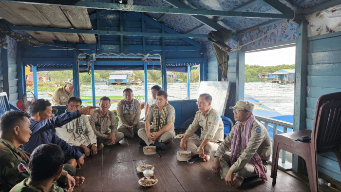 បេសកកម្មនេះអមដំណើរដោយលោកនាយរងអធិការដ្ឋានរដ្ឋបាលជលផលខាងជើងបឹងទន្លេសាប លោកនាយខណ្ឌរដ្ឋបាលជលផលសៀមរាប និងសហការី ព្រមទាំងសមាជិកសហគមន៍នេសាទ បានជួបសំណេះសំណាល និងសាកសួរសុខទុក្ខកងកម្លាំងប្រដាប់អាវុធយោធភូមិភាគទី៤ ប្រចាំការនៅសង្កាត់ចុងឃ្នៀស ដឹកនាំដោយលោកឧត្តមសេនីយ៍ត្រី អាន