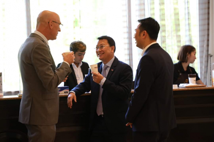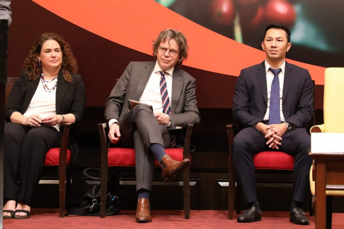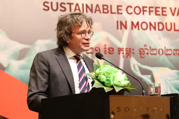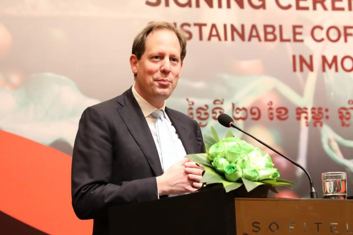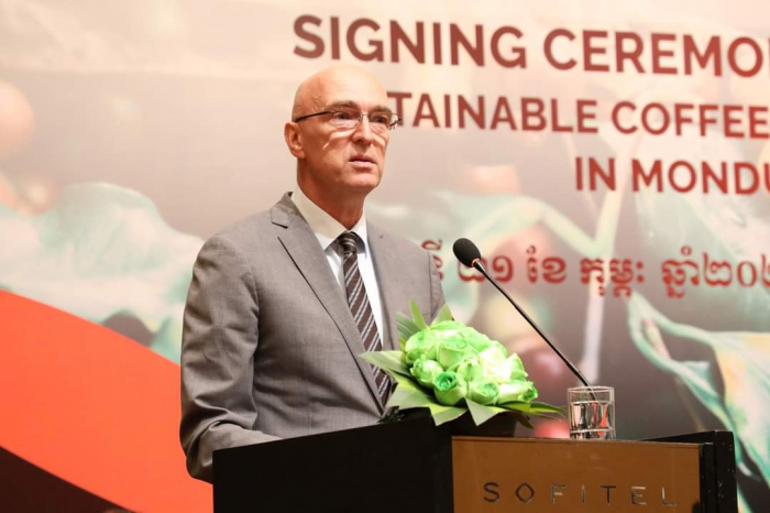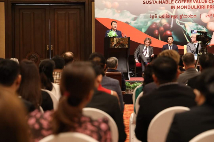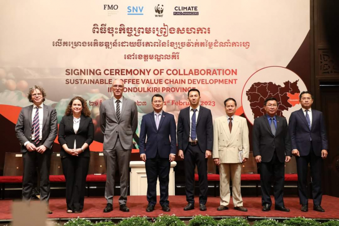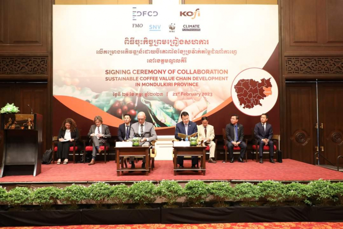 ក្នុងពិធីនេះ ឯកឧត្តមរដ្ឋមន្ត្រី បានបង្ហាញនូវការស្វាគមន៍ និងគាំទ្រ ទាំងលើទិដ្ឋភាពបច្ចេកទេស ច្បាប់ និងពាណិជ្ជកម្ម នៃការចុះអនុស្សរណៈ (MOU) លើកិច្ចសហប្រតិបត្តិការរវាងក្រុមហ៊ុនខូហ្វី និងអង្គការ SNV ប្រទេសហូឡង់ និងការប្រែប្រួលអាកាសធាតុ (DFCD) ក្នុងចូលរួមកាត់បន្ថយបញ្ហាបម្រែបម្រួលអាកាសធាតុ និងលើកកម្ពស់ជីវភាពប្រជាពលរដ្ឋ ពីវិស័យឯកជនតាមរយៈការដាំកាហ្វេគោរពតាមគោលការណ៍បរិស្ថាន និងចាប់យកឱកាសបង្កើនប្រាក់ចំណេញ។