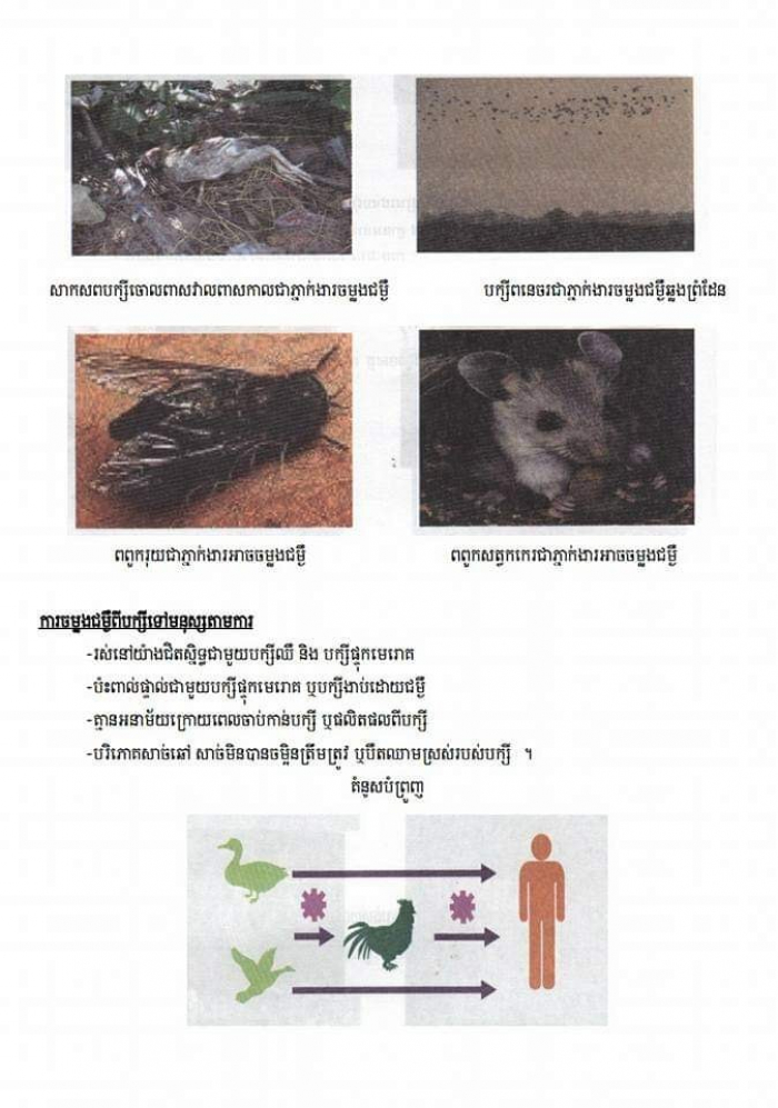ក្នុងករណីដែលប្រទះឃើញបក្សីដែលឈឺ ងាប់ ឬសង្ស័យថាមានជំងឺ សូមទាក់ទាងមកលេខទូរស័ព្ទបន្ទាន់របស់ក្រសួងកសិកម្ម រុក្ខាប្រមាញ់ និងនេសាទ ១២៨៩ ដោយឥតគិតថ្លៃ។