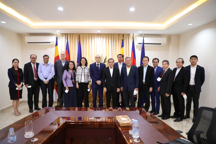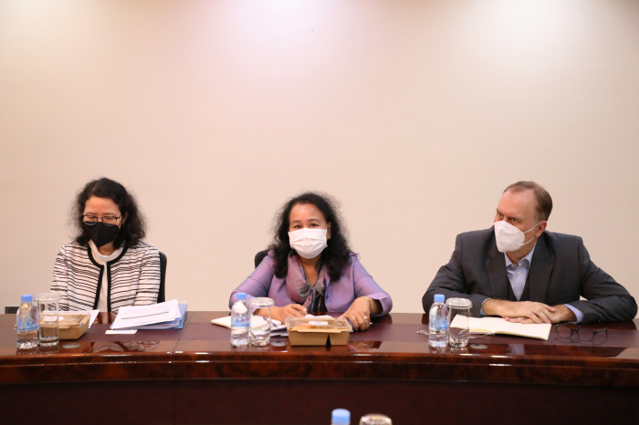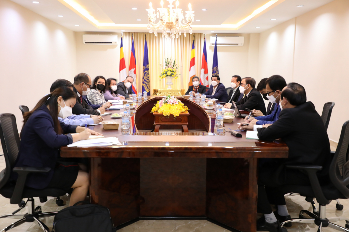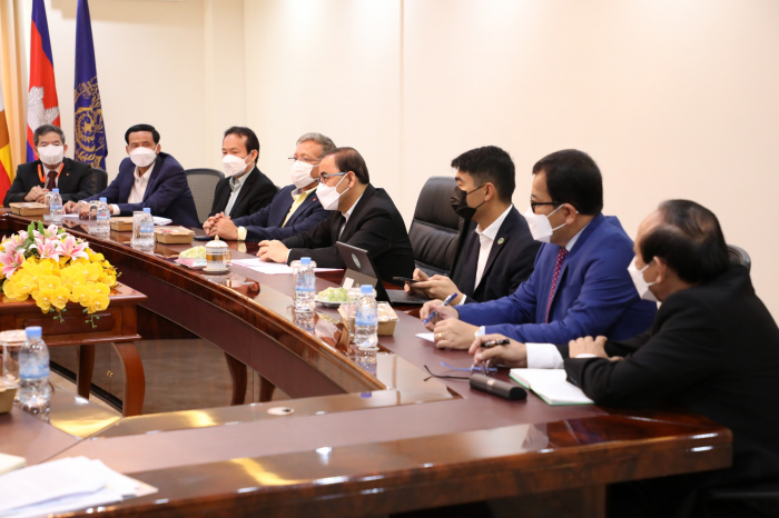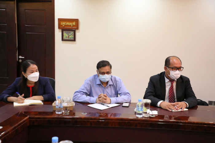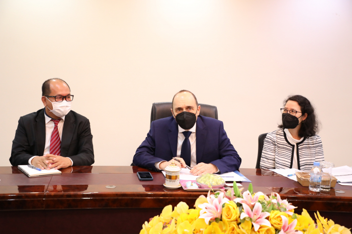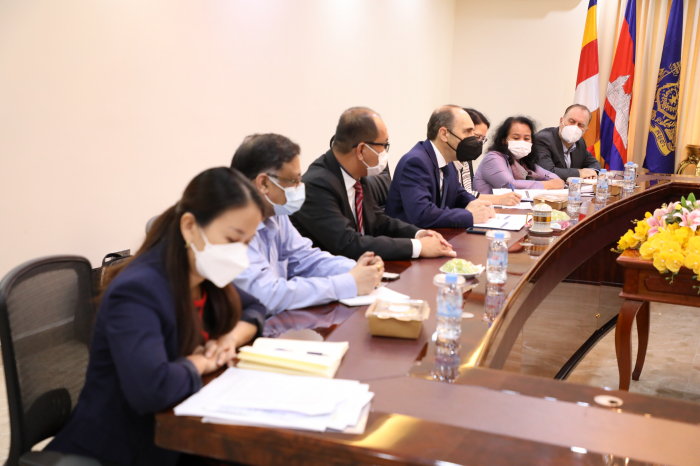 នៅព្រឹកថ្ងៃអង្គារ ៥រោច ខែផល្គុន ឆ្នាំឆ្លូវ ត្រីស័ក ព.ស២៥៦៥ ត្រូវនឹងថ្ងៃទី២២ ខែមិនា ឆ្នាំ២០២២ ឯកឧត្តមរដ្ឋមន្រ្តី វេង សាខុន បានទទួលជួបពិភាក្សា ការងារជាមួយ លោក Benoir Bosquet នាយកប្រចាំតំបន់អាស៊ីខាងកើត និងប៉ាស៊ីហ្វិក ទទួលបន្ទុកការអភិវឌ្ឍន៍ចីរភាពសកល និងសហការីនៃធនាគារពិភពលោក នៅឯទីស្តីក្រសួងកសិកម្ម រុក្ខាប្រមាញ់ និងនេសាទ។ គោលបំណង នៃកិច្ចប្រជុំនេះគឺ ដើម្បីពិនិត្យ និងវាយតម្លៃទៅលើដំណើរការគម្រោងនានានៅក្នុងវិស័យកសិកម្ម និងការរៀបចំផែនការគាំទ្រគម្រោងកម្មវិធីសម្រាប់វិស័យកសិកម្មបន្ថែមទៀតនាពេលអនាគត។ ជាកិច្ចចាប់ផ្តើម ឯកឧត្តមរដ្ឋមន្រ្តី បានសម្តែងនូវអំណរគុណចំពោះធនាគារពិភពលោក ដែលបានចូលរួមគាំទ្រដល់ការអភិវឌ្ឍន៍សេដ្ឋកិច្ច និងជាពិសេសក្នុងវិស័យកសិកម្ម។ នៅក្នុងបរិបទការរាតត្បាតនៃជំងឺកូវីត ធនាគារពិភពលោកបានចូលរួមគាំទ្រដល់ការទ្រទ្រង់ជីវភាពកសិករ និងគ្រួសារដែលរងផលប៉ះពាល់ពីជំងឺ១៩ តាមរយៈគម្រោងពិពិធកម្មកសិកម្មកម្ពុជា ដែលបានចូលរួមដោះស្រាយបញ្ហាសន្តិសុខស្បៀង និងចំណូលរបស់ប្រជាកសិករ។ ទន្ទឹមនឹងនេះ ឯកឧត្តមបានជម្រាបជូនថា ដំណើរគម្រោងទាំងឡាយក្រោមហិរញ្ញប្បទានឥណទាន របស់ធនាគារពិភពលោកមានដំណើរការរលូនល្អ និងបានជួយជំរុញកំណើនផលិតផលកសិកម្ម ជាពិសេសចូលរួមក្នុងការទ្រទ្រង់កំណើនសេដ្ឋកិច្ច។ លោក Benoir Bosquet បានថ្លែងអំណរគុណដល់ ថ្នាក់ដឹកនាំក្រសួងកសិកម្ម រុក្ខាប្រមាញ់ និងនេសាទ ព្រមទាំងសហការីទាំងអស់ ដែលបានចូលរួមយ៉ាងសកម្មក្នុងការសហការជាមួយធនាគារពិភពលោក ក្នុងដំណើរការរៀបចំ និងអនុវត្តគម្រោងបានជោគជ័យនាពេលកន្លងមក។ ជាមួយគ្នានេះ ធនាគារពិភពលោកកំពុងពិនិត្យពិចារណាលើការគាំទ្របន្ថែមទៀត នៅក្នុងអនុវិស័យសុខភាពសត្វនិងផលិតកម្មសត្វ និងអនុវិស័យជលផល ដើម្បីជំរុញកំណើនសេដ្ឋកិច្ចកម្ពុជា នៅក្នុងវិស័យកសិកម្ម និងដើម្បីធានាបាននូវសន្តិសុខស្បៀង អាហារូបត្ថម្ភ សុខមាលភាពសាធារណៈ និងបង្កើនការនាំចេញផងដែរ។ ក្រៅពីនេះធនាគារពិភពលោក ក៏មានគម្រោងរៀបចំផែនការយុទ្ធសាស្រ្តឆ្លើយតប និងបន្ស៊ាំទៅនឹងការប្រែប្រួលអាកាសធាតុនៅក្នុងវិស័យកសិកម្ម ដើម្បីធានានិរន្តភាពនៅក្នុងវិស័យនេះ។ ជាចុងក្រោយ ឯកឧត្តមរដ្ឋមន្រ្តី បានសម្តែងសេចក្តីរីករាយ និងស្វាគមន៍ ចំពោះកិច្ចសហប្រតិបត្តិការជាមួយធនាគារពិភពលោក និងត្រៀមខ្លួនរួចជាស្រេចក្នុងការរៀបចំគម្រោង កម្មវិធី និងផែនការនានាដែលពាក់ព័ន្ធក្នុងការអភិវឌ្ឍន៍វិស័យកសិកម្ម។ ហើយឯកឧត្តមរដ្ឋមន្រ្តី បានជូនពរដល់ដំណើរទស្សនកិច្ចរបស់លោក Benoir Bosquet និងសហការី ទទួលបានផ្លែផ្កា ប្រកបដោយភាពជោគជ័យ។