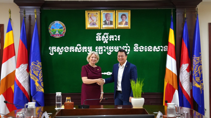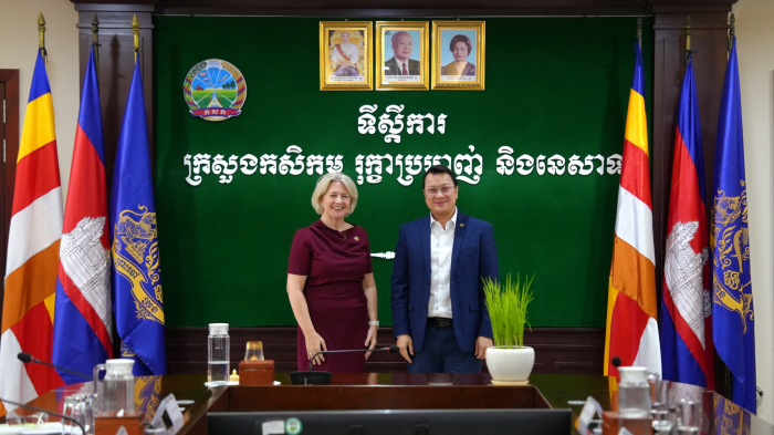 នៅរសៀលថ្ងៃទី១១ ខែមិថុនា ឆ្នាំ២០២៤ ឯកឧត្តម ឌិត ទីណា រដ្ឋមន្ត្រីក្រសួងកសិកម្ម រុក្ខាប្រមាញ់ និងនេសាទ និងថ្នាក់ដឹកនាំ បានទទួលជួបសម្តែងការគួរសម និងពិភាក្សាការងារជាមួយលោកស្រី Beverly Posma នាយិកាប្រតិបត្តិនៃអង្គការ Grow Asia Partnership នៅទីស្តីការក្រសួងកសិកម្ម រុក្ខាប្រមាញ់ និងនេសាទ។