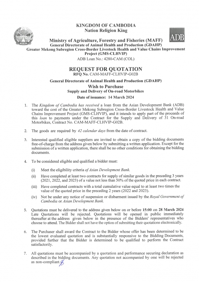 G02B-RFQ-On-Road Motorbikes to be advertised